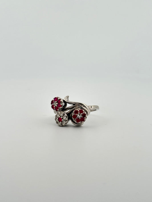 Vintage ruby and diamond floral cocktail ring in 14k white goldRegular price $885.00 USDRegular priceUnit price / per-