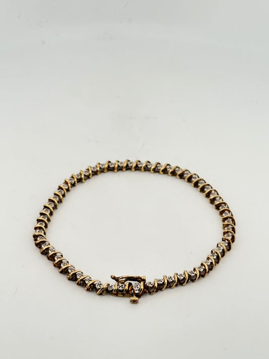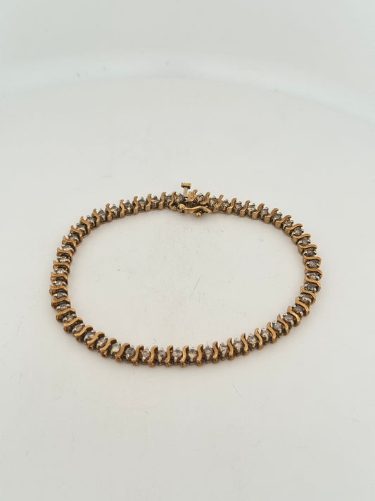 Vintage natural 1ct diamond tennis bracelet in 10k gold