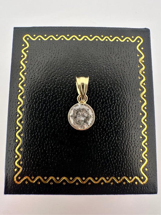 Natural salt and pepper diamond bezel set pendant - 1.10ct in 14k yellow gold