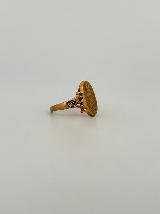 Vintage Victorian revival signet ring circa 1970s in 10k yellow gold