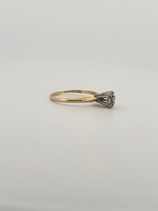 Vintage natural diamond cluster ring in 10k yellow gold