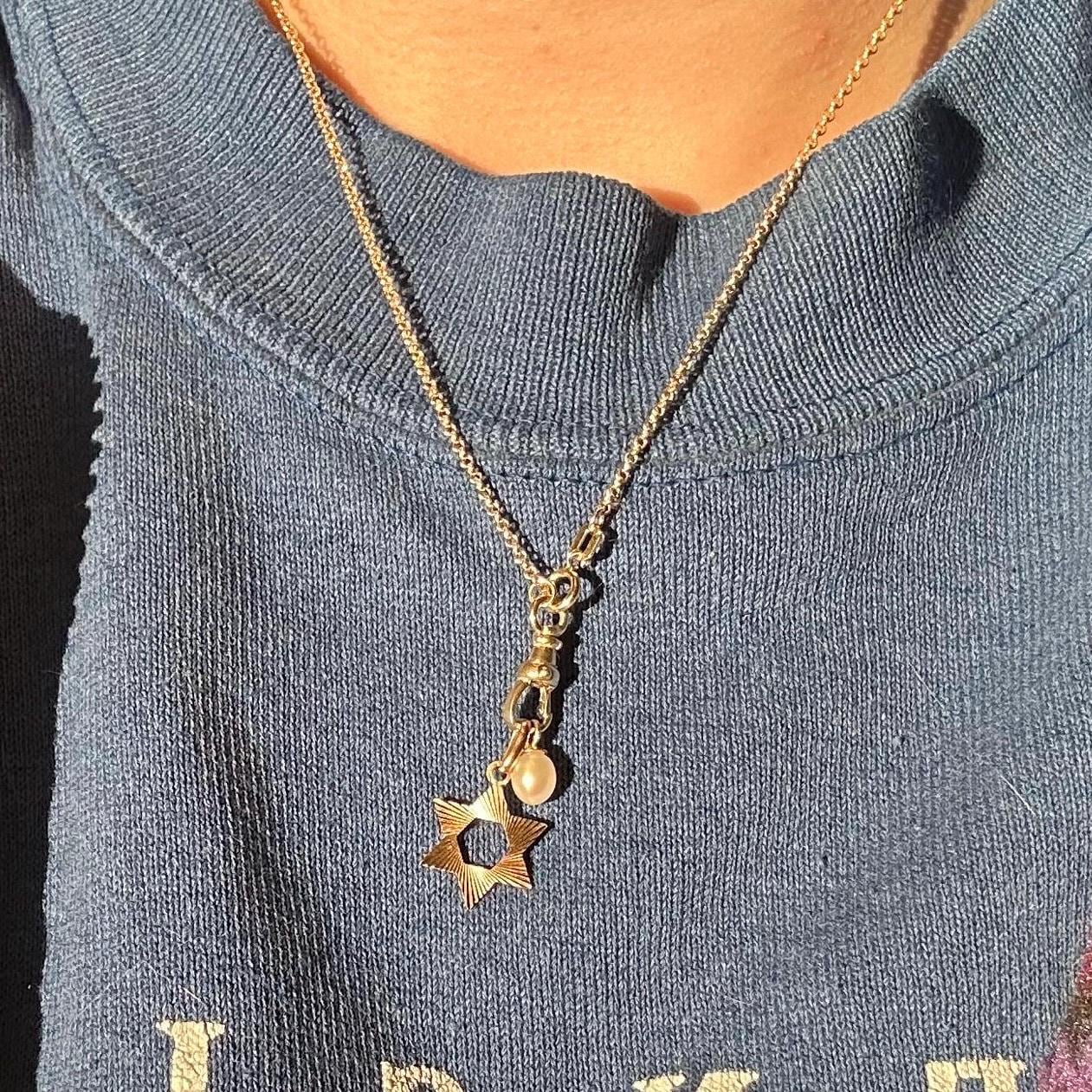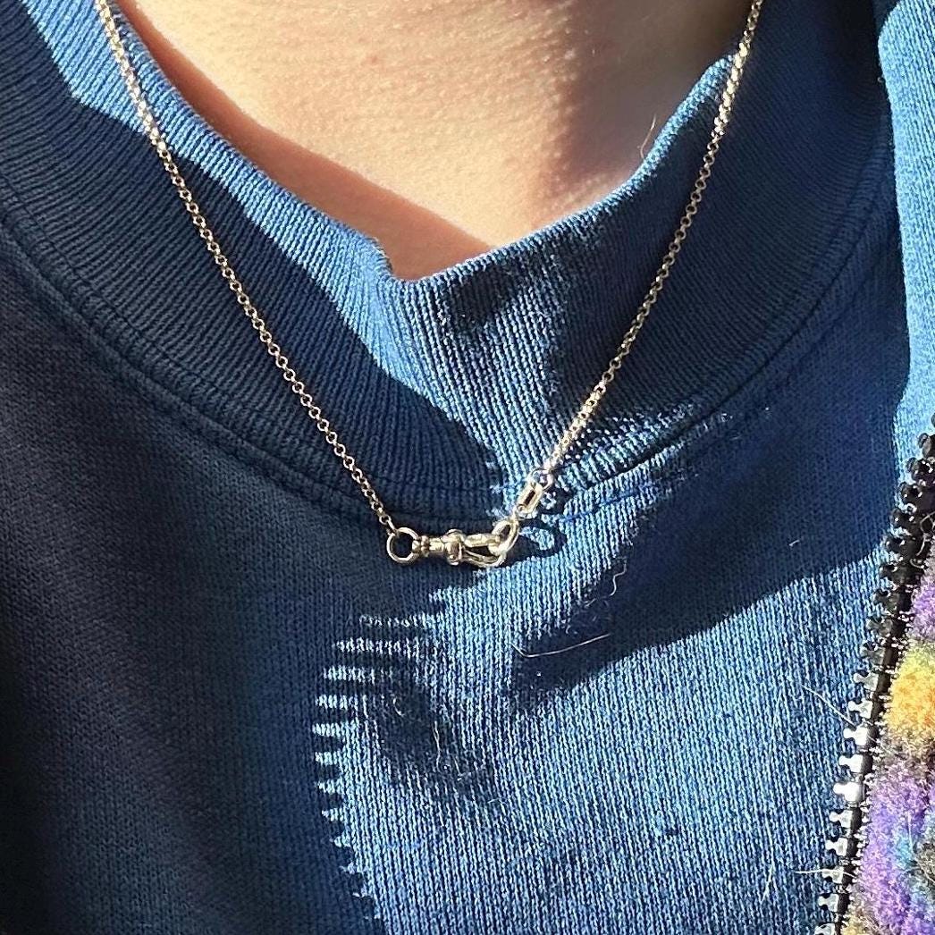 14k fob clip watch chain necklace on 16" rolo chain
