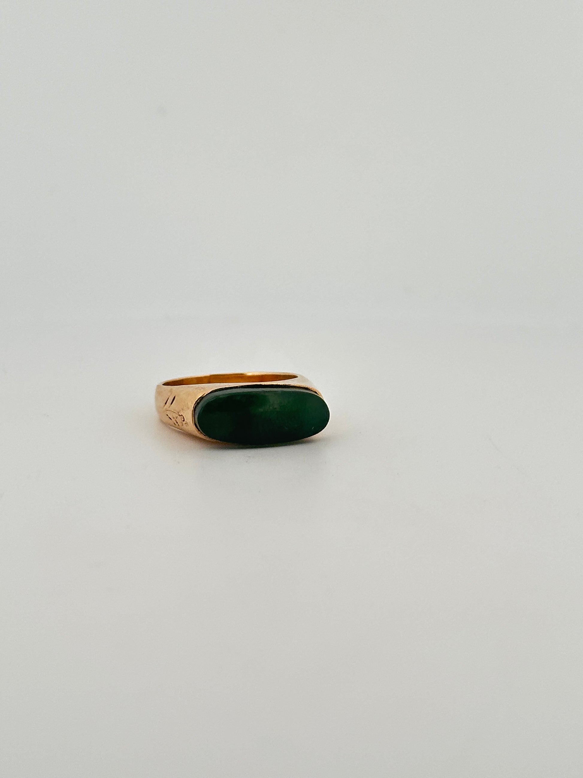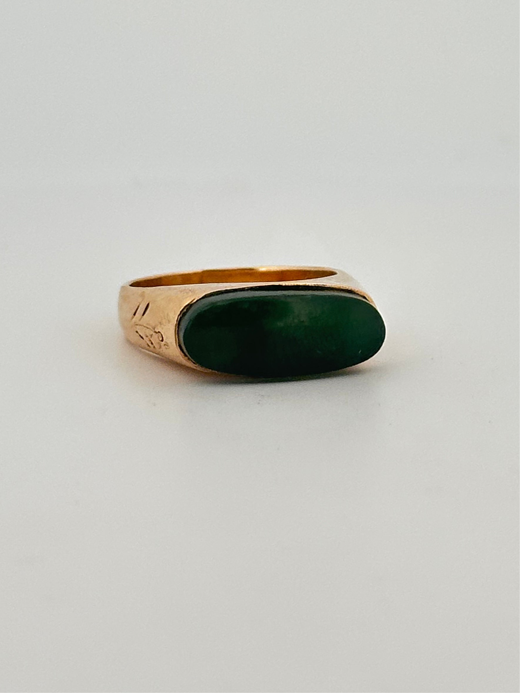 Antique Victorian jade cabochon ring in 14k yellow gold