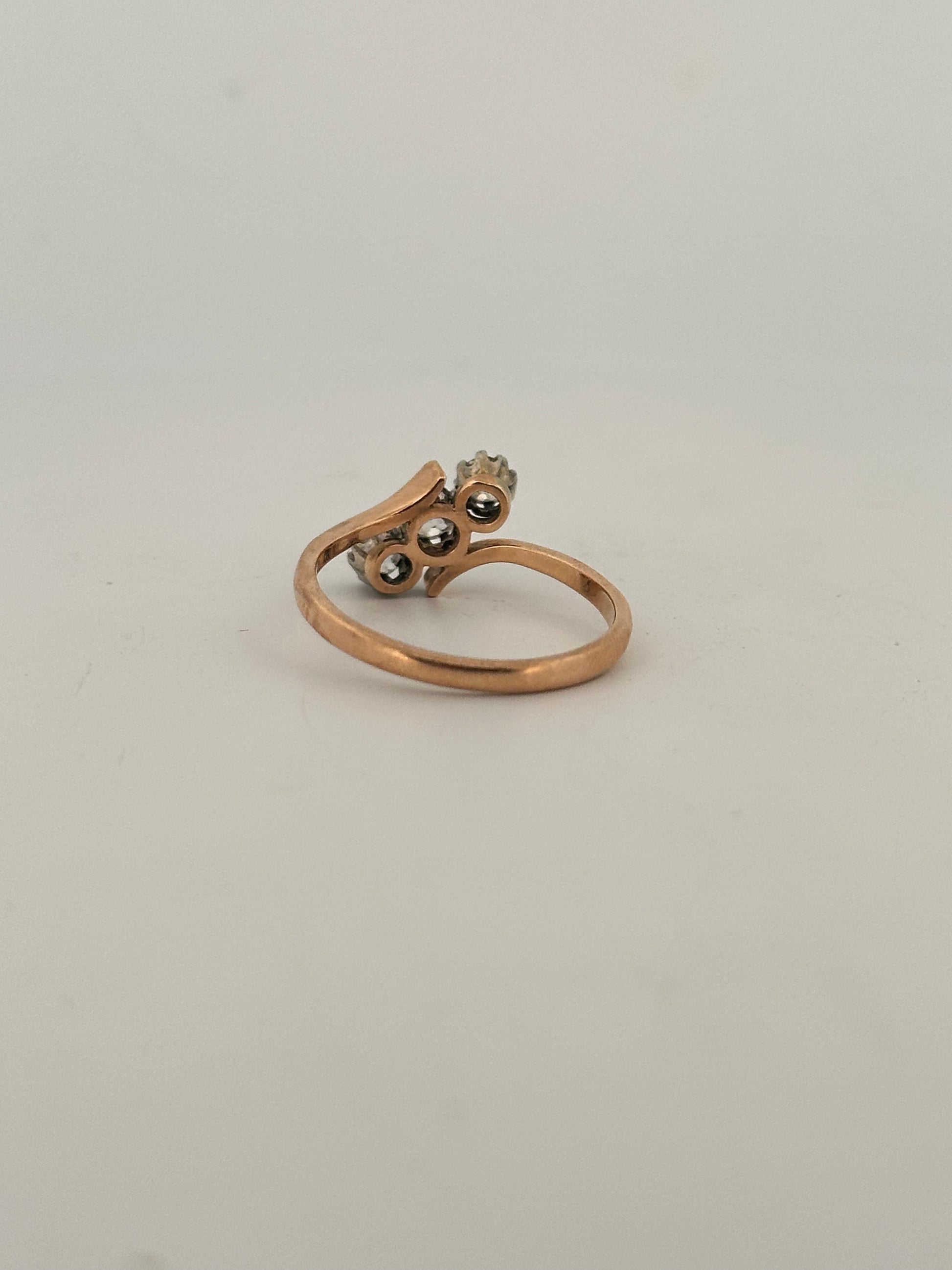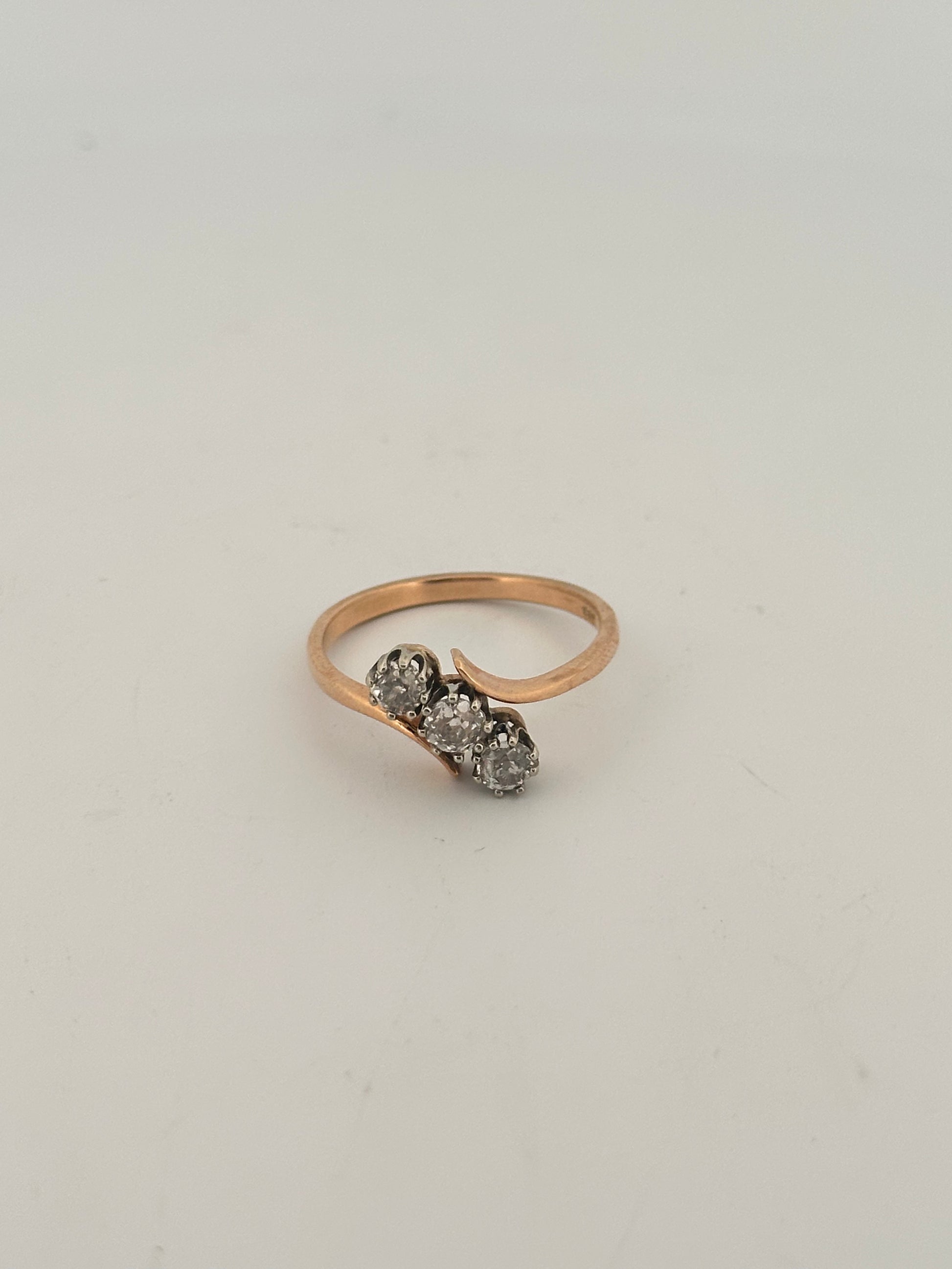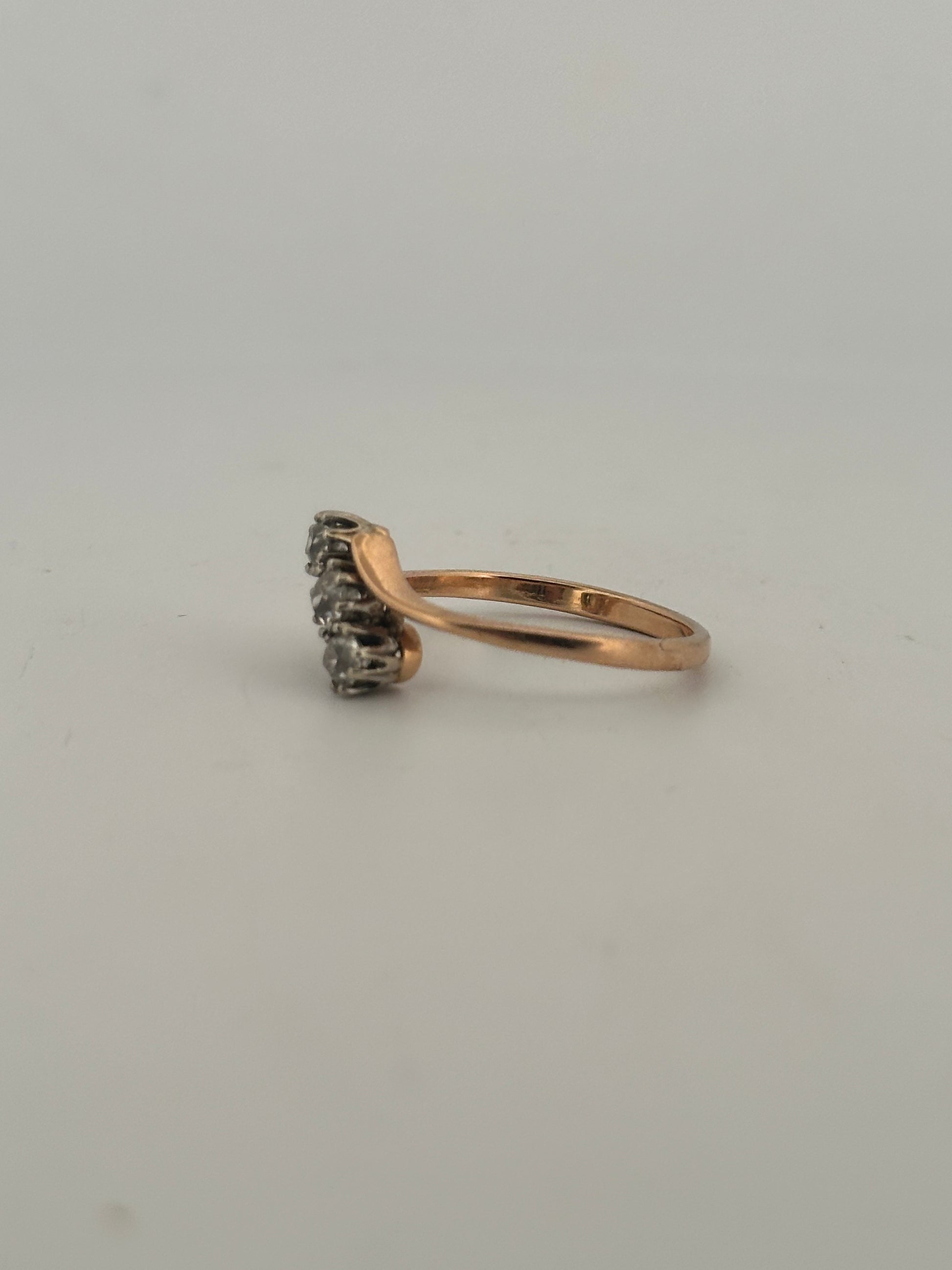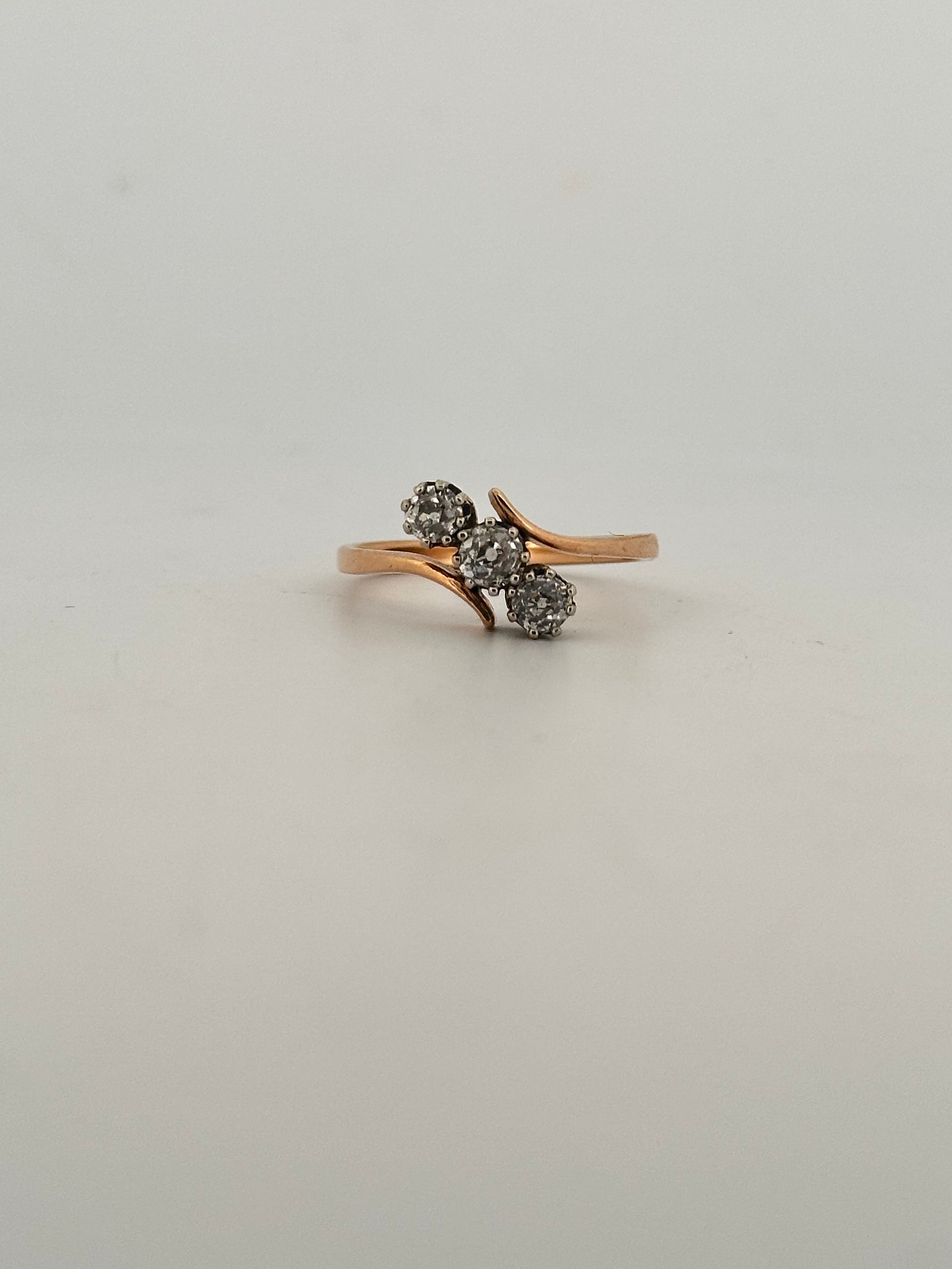 Antique Victorian old mine cut trilogy ring in 14k yellow gold
