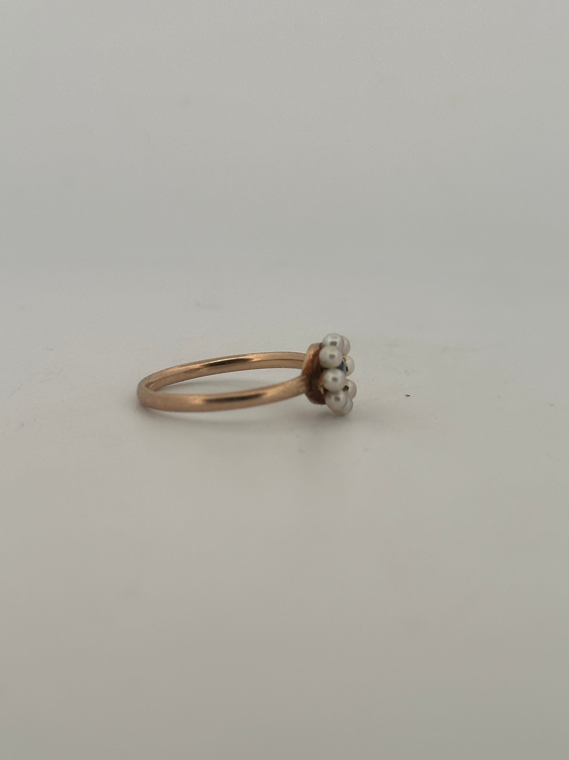 Antique Victorian seed pearl and natural Ceylon sapphire ring set in 14k yellow gold.