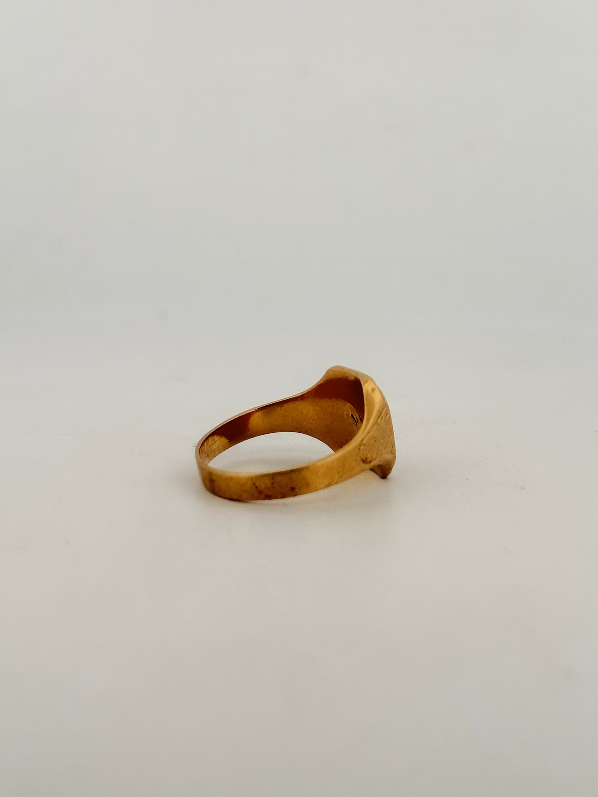 Antique Victorian signet in 14k yellow gold with hand engraved side detail with the initials “JG”