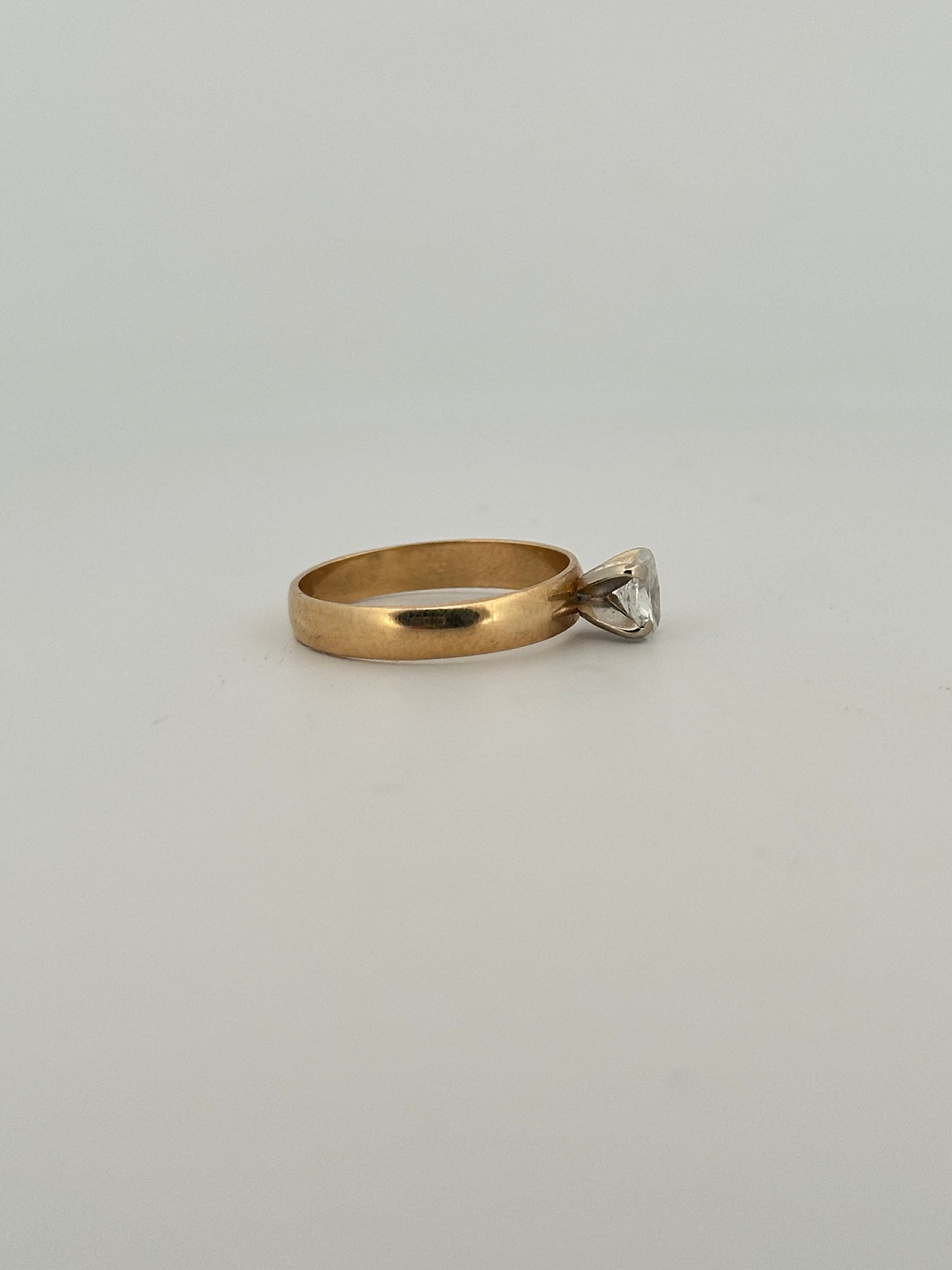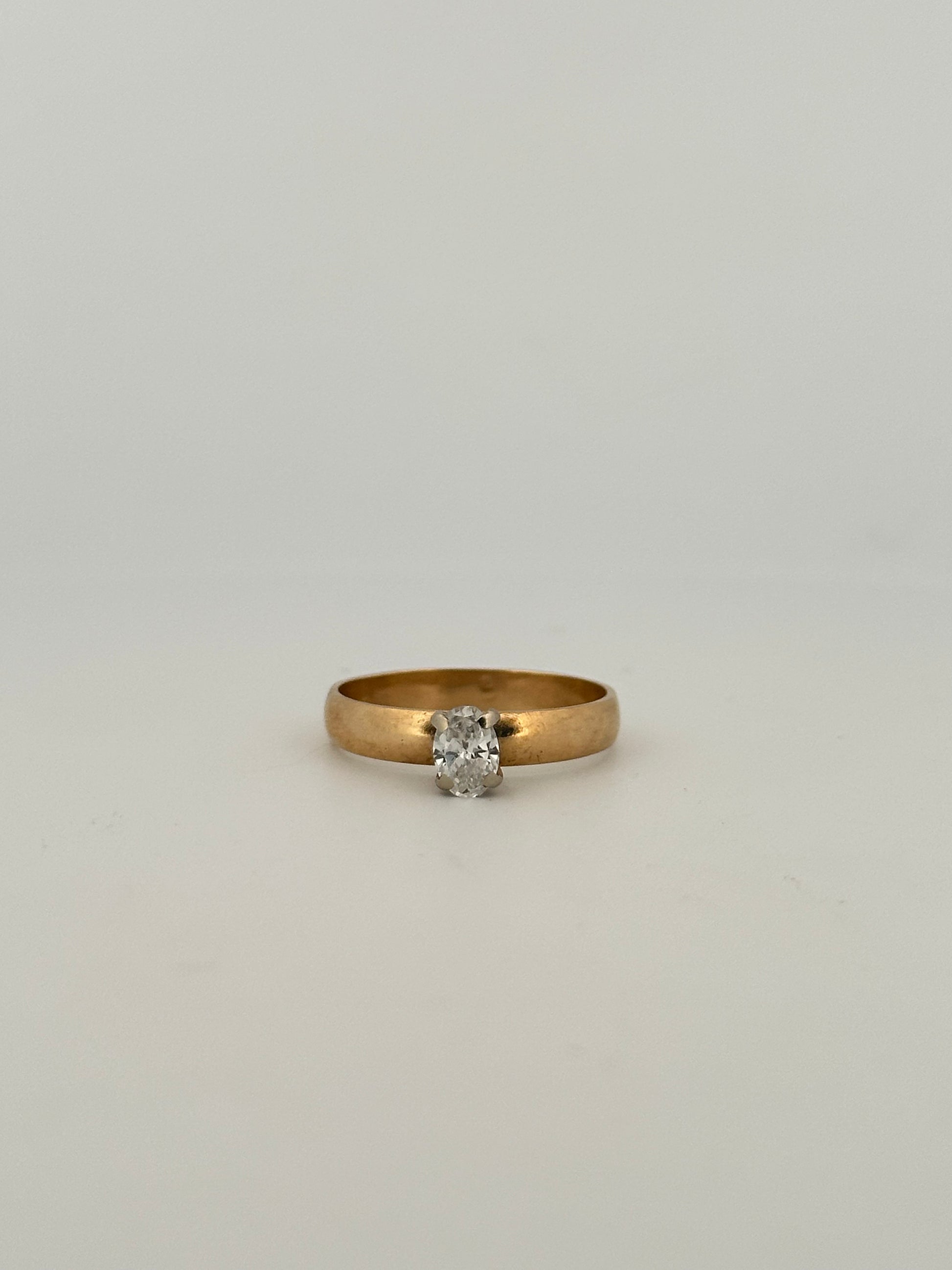 Vintage natural cut oval diamond solitaire ring on thick 14k yellow gold band