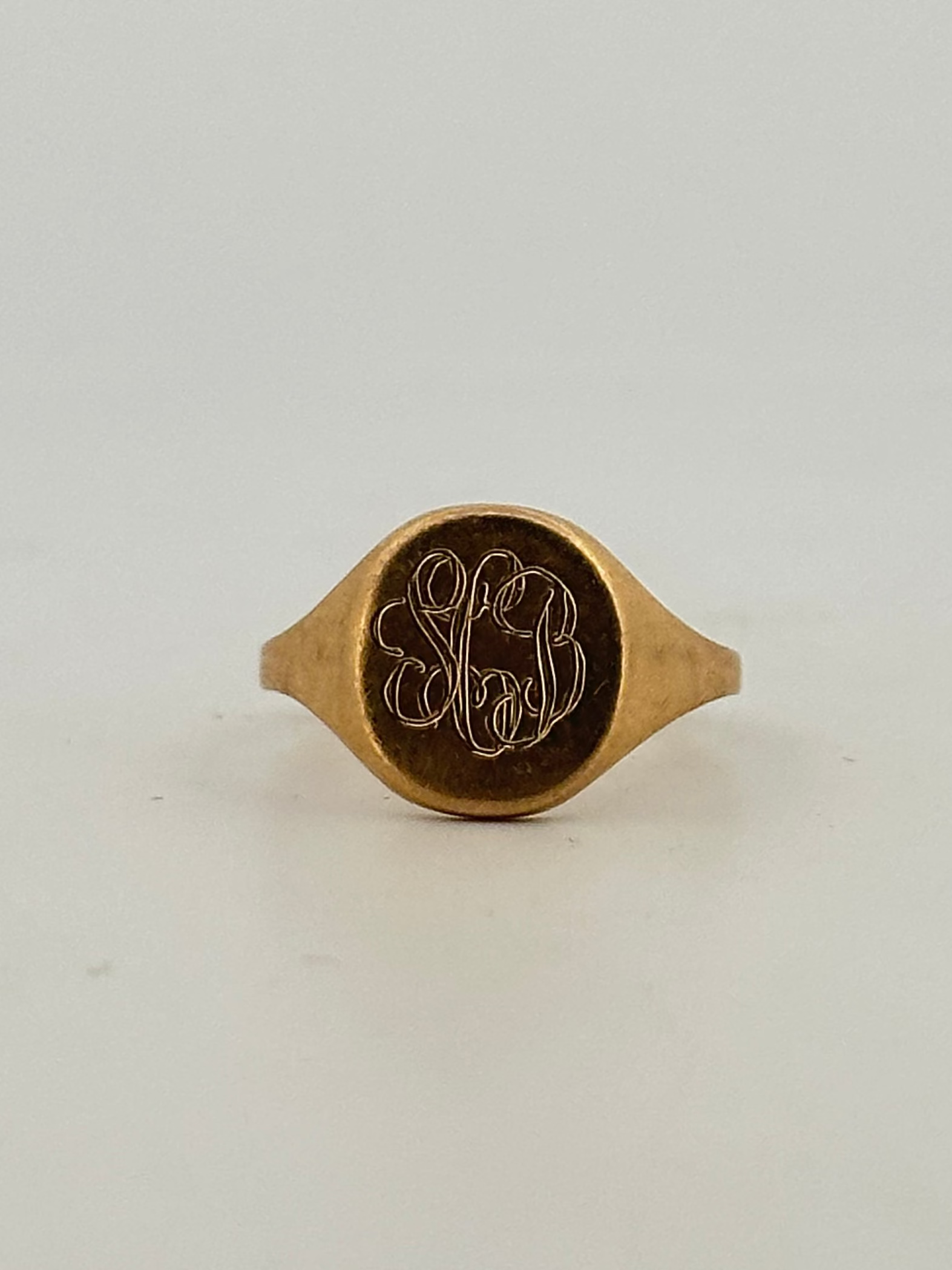 vintage Victorian revival signet in 10k yellow gold circa 1970s with the initials “SCB”