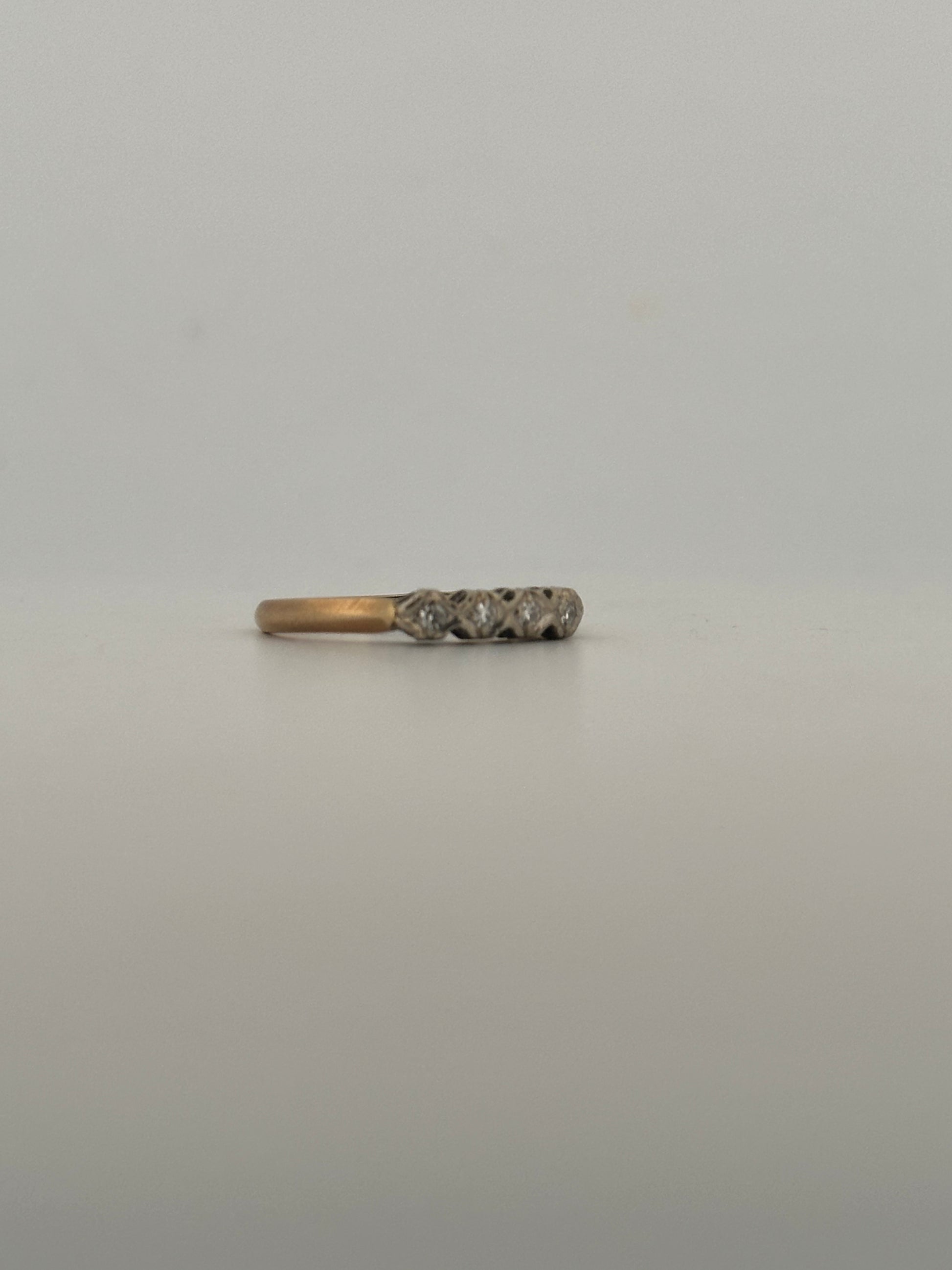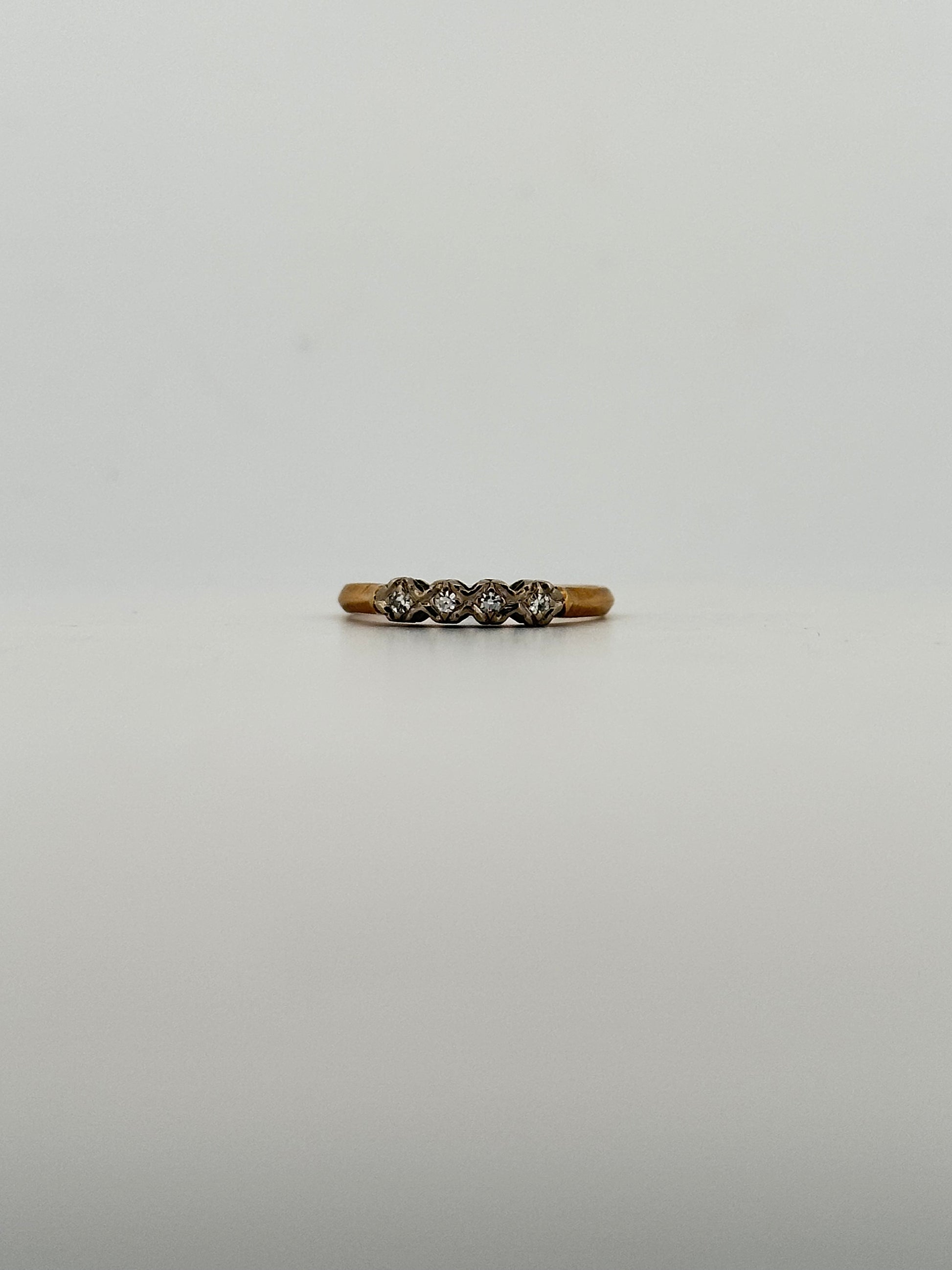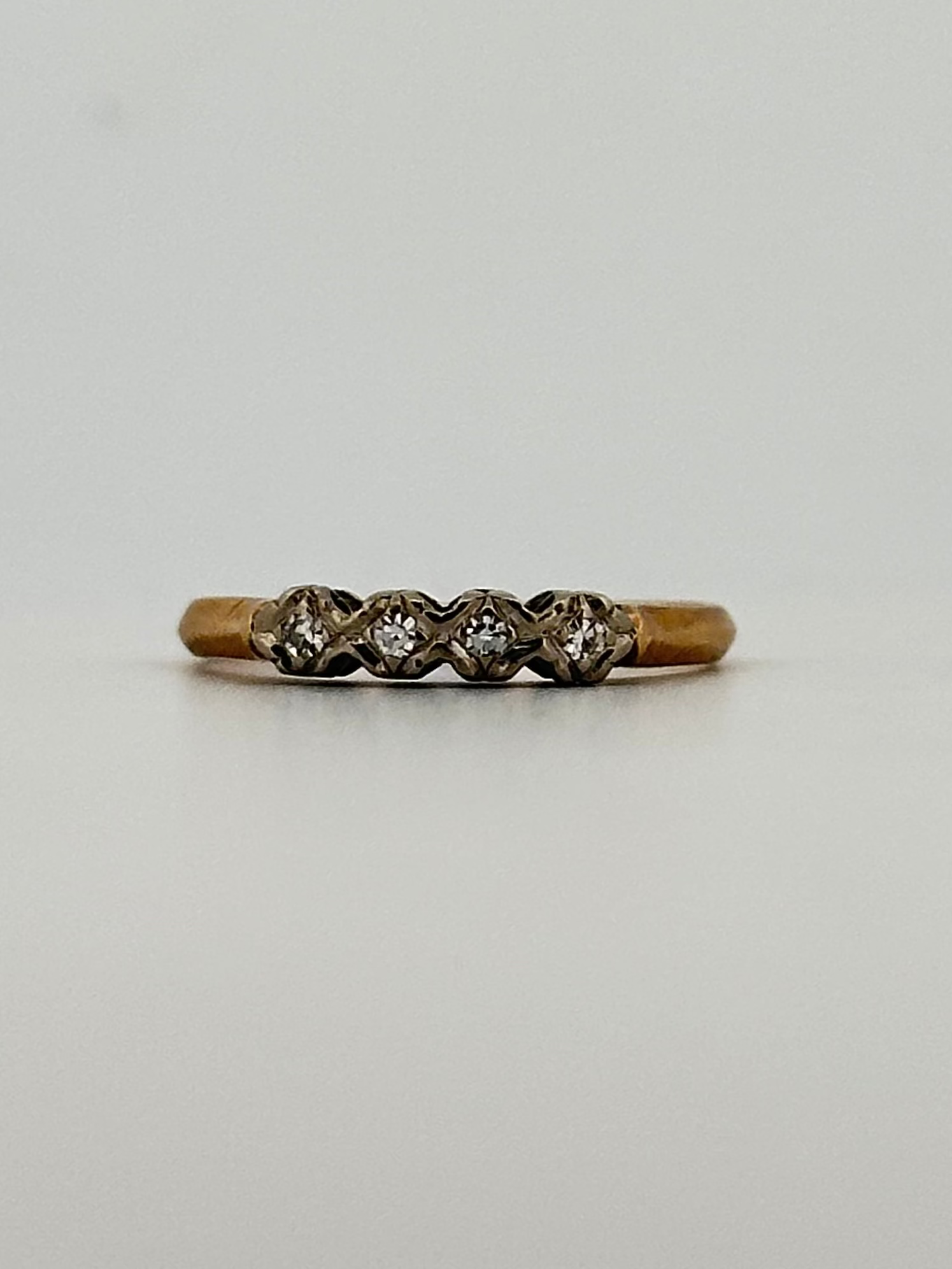 natural diamond half eternity with 14k white gold top and yellow gold band.