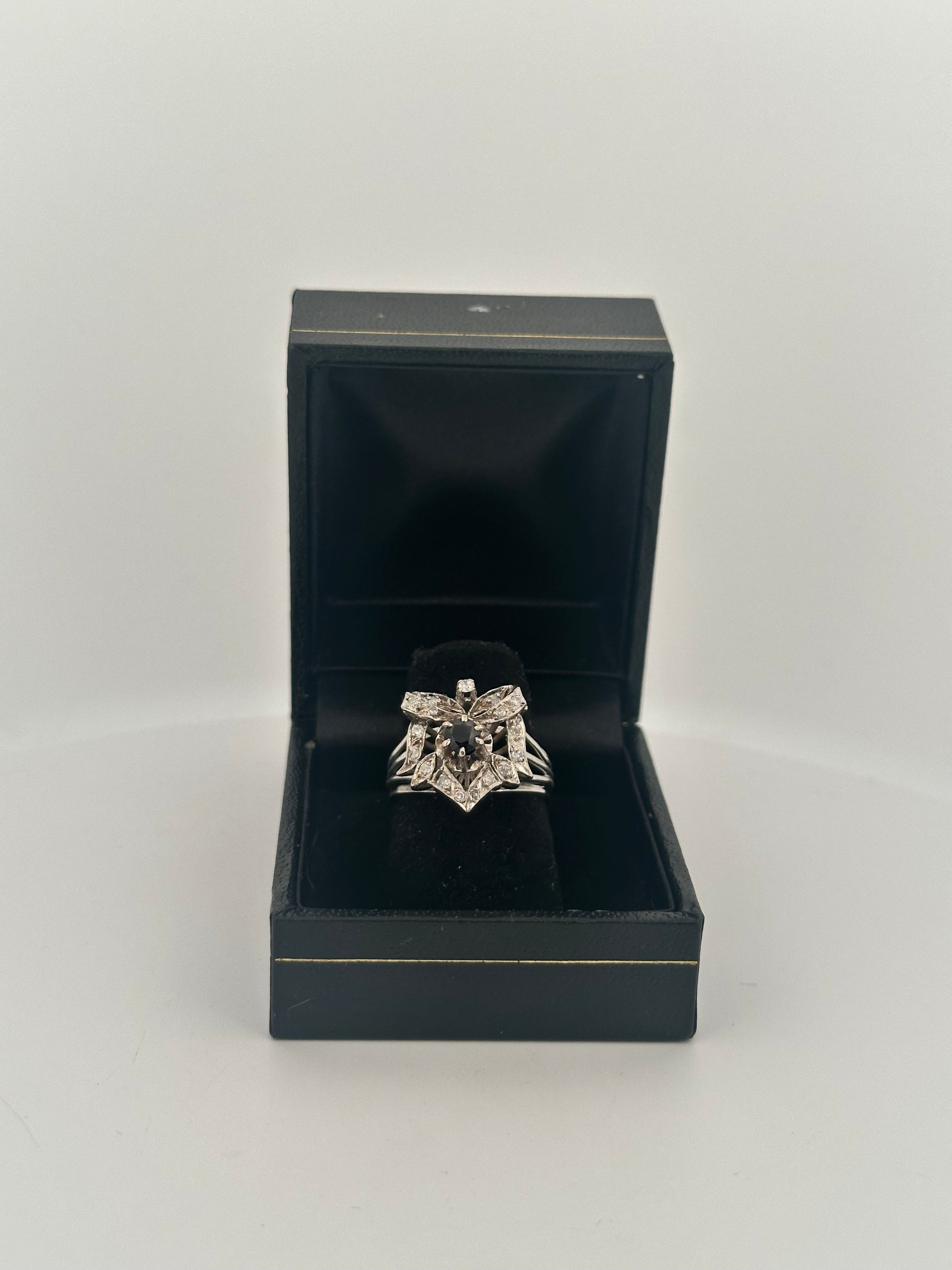 Antique natural diamond and sapphire Belle Époque era ring in sterling silver