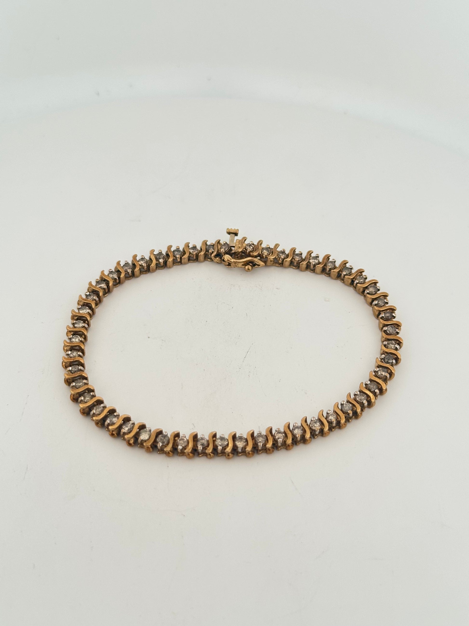 Vintage natural diamond tennis bracelet in 10k yellow gold with white gold setting on each link with natural brilliant cut .05ct each approximately 2.5ct total