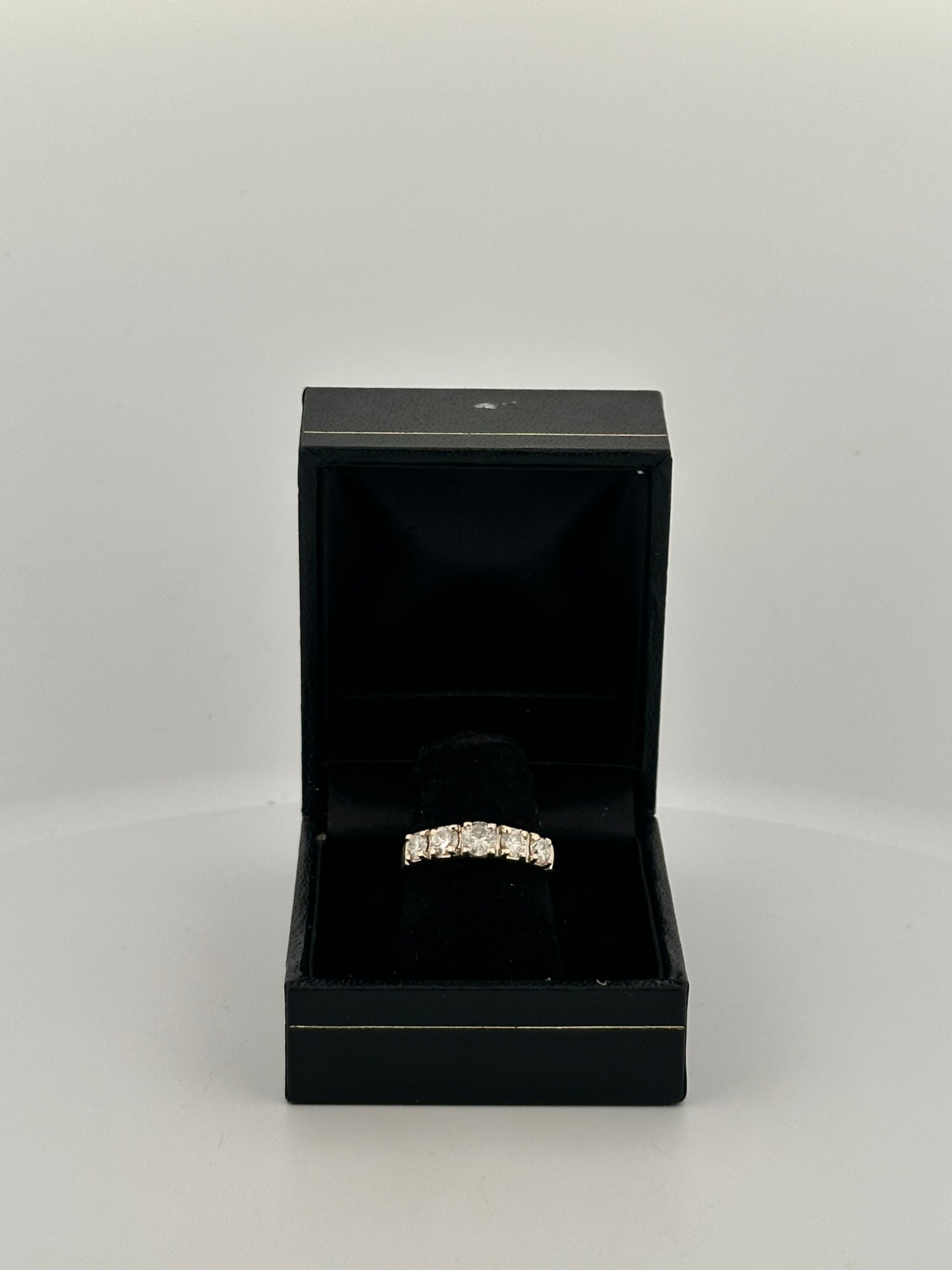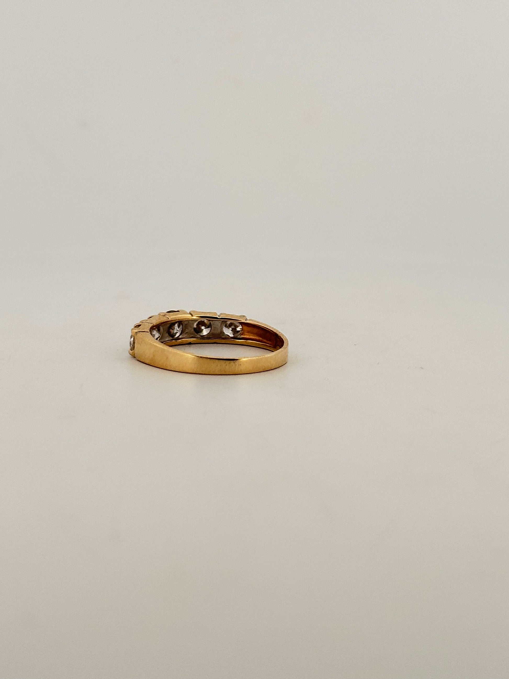 natural diamond half eternity with 10k white gold top and yellow gold band. Originally set with CZs and replaced with natural diamonds - approximately .90ct in total