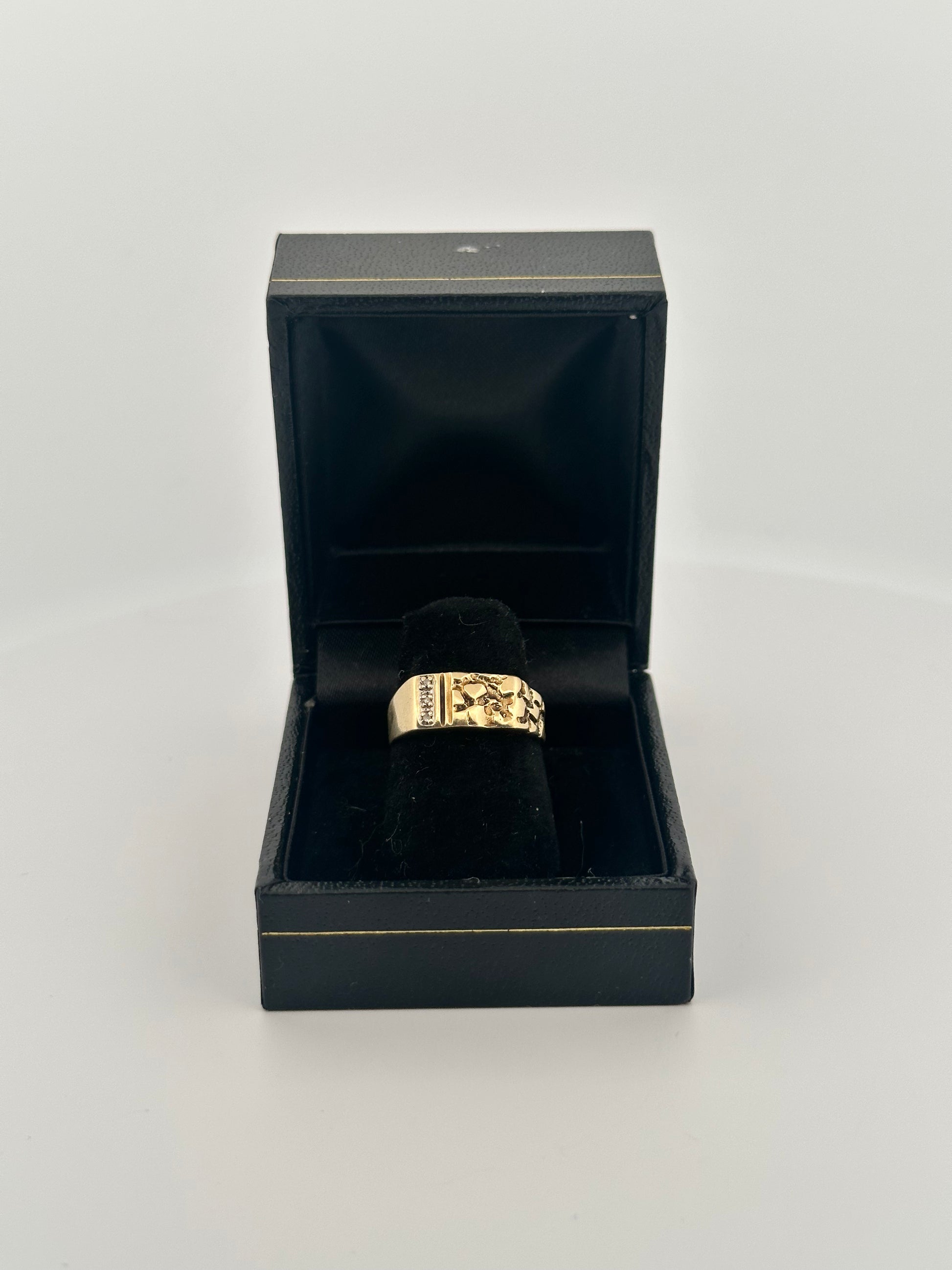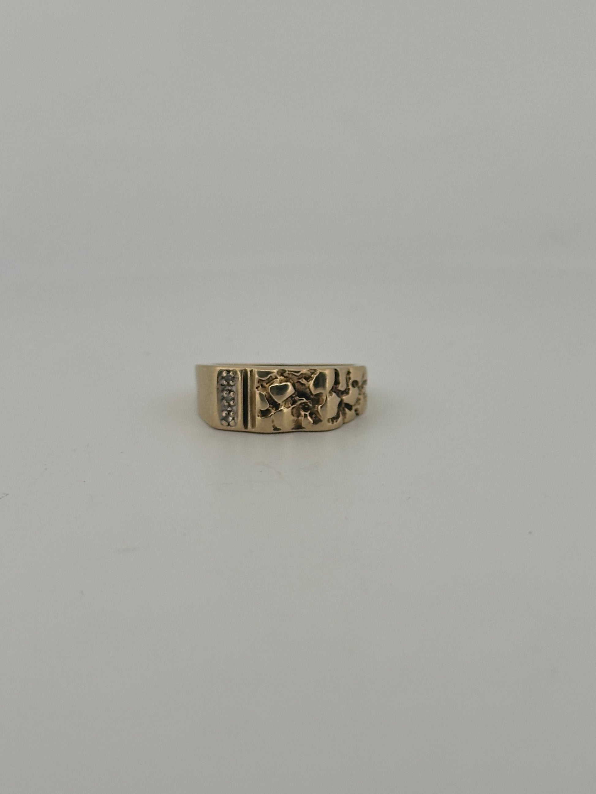 vintage 10k yellow gold nugget ring with natural diamond accents approximately .10ct total