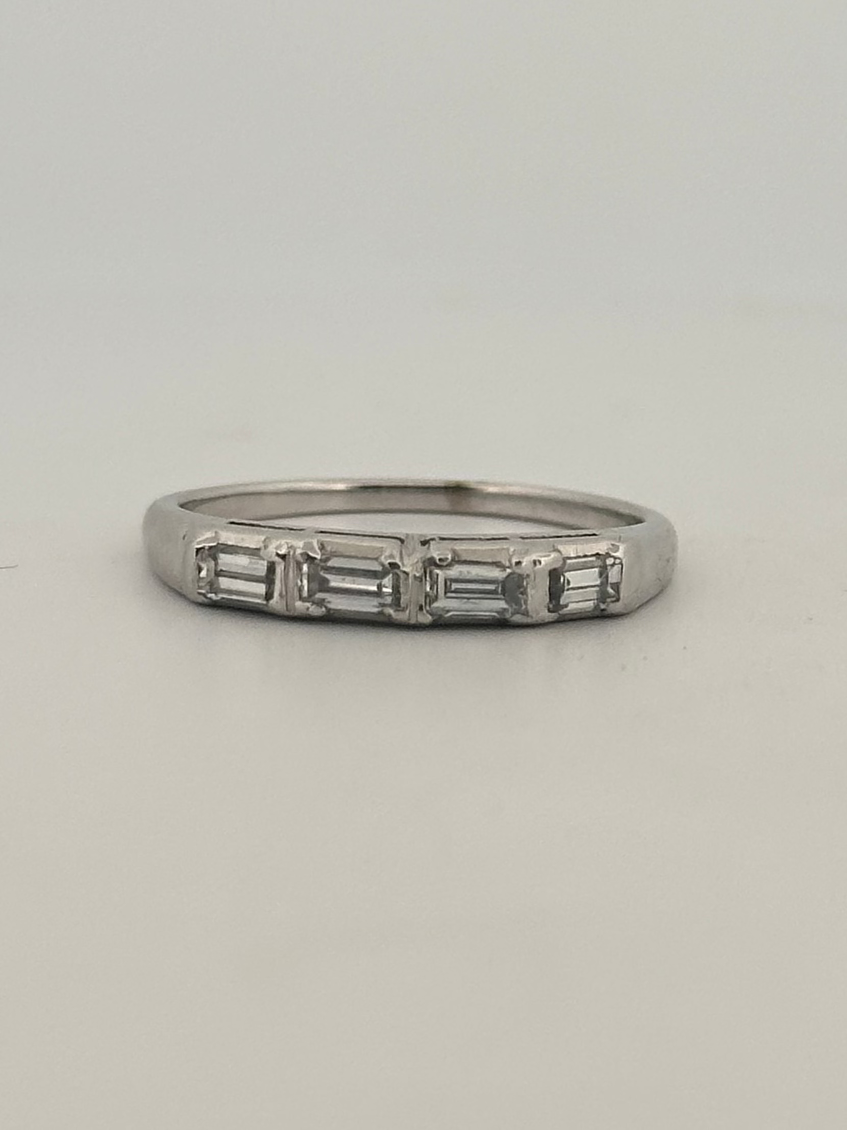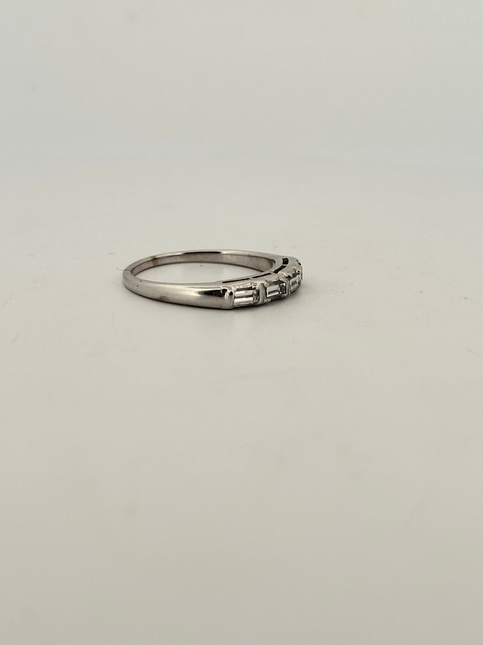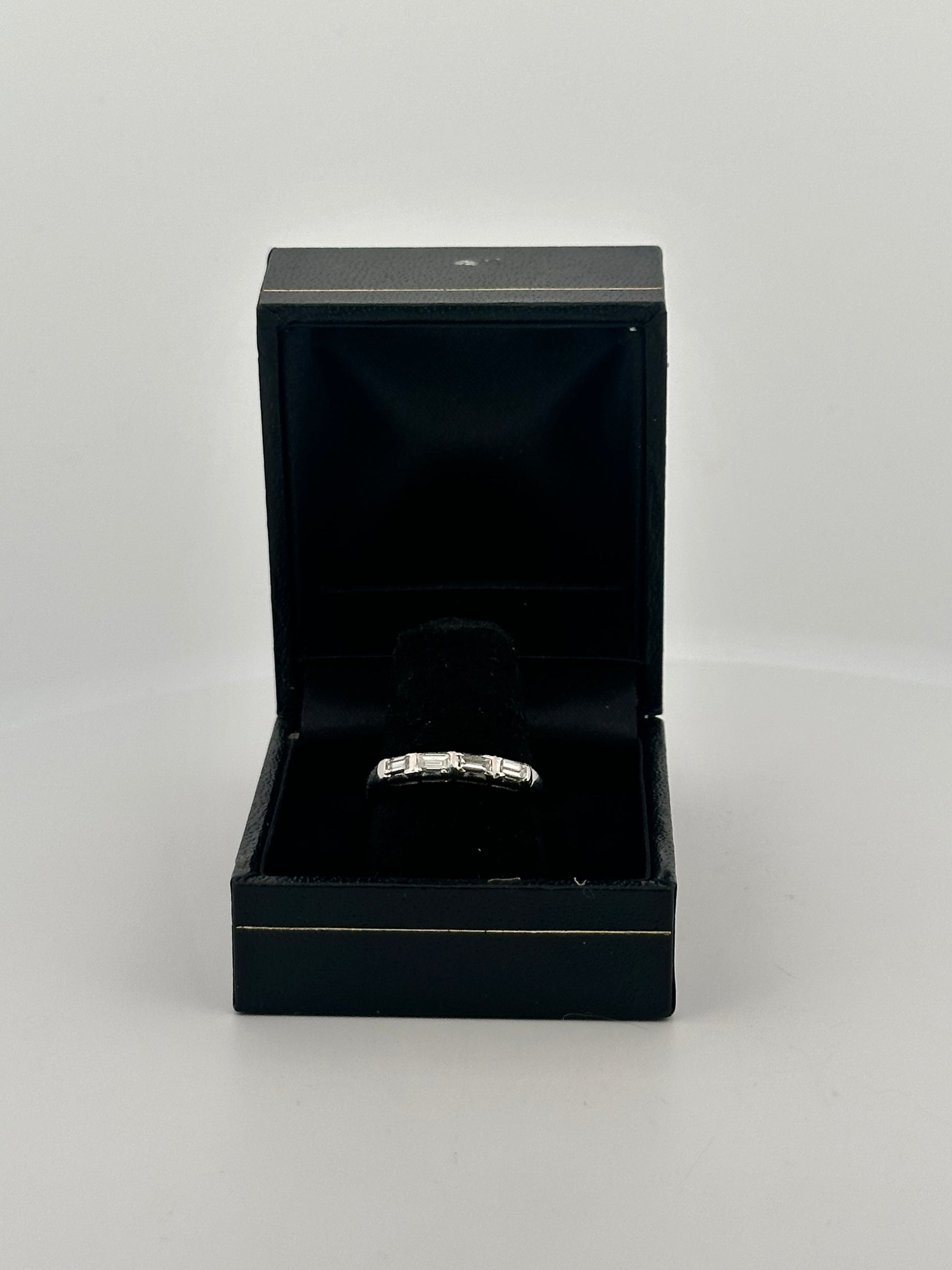 natural tension set princess cut diamond half eternity band in 14k white gold.