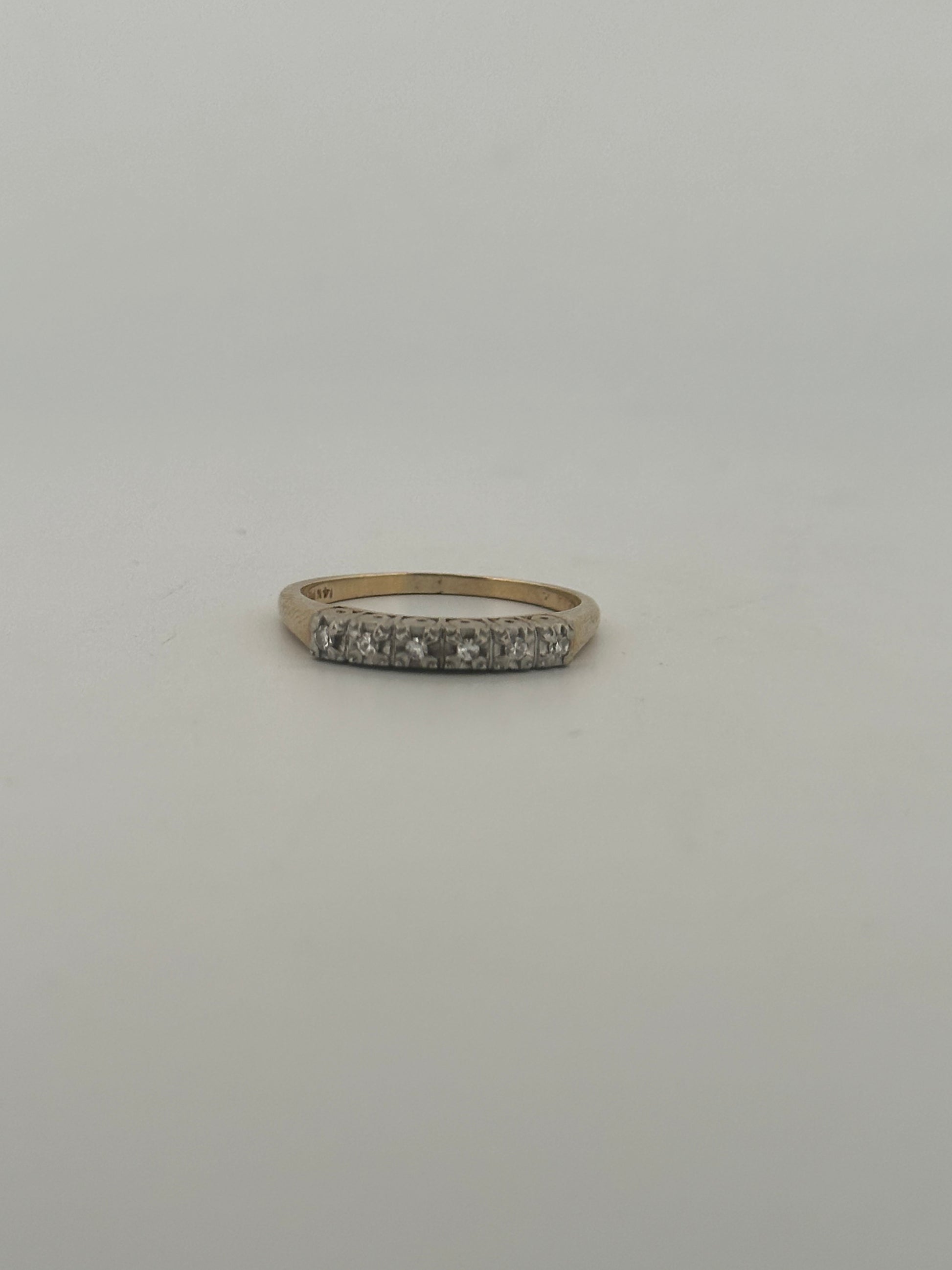 Vintage natural diamond stacker in 14k gold white gold top and yellow gold band with natural antique single cut diamonds circa 1930s