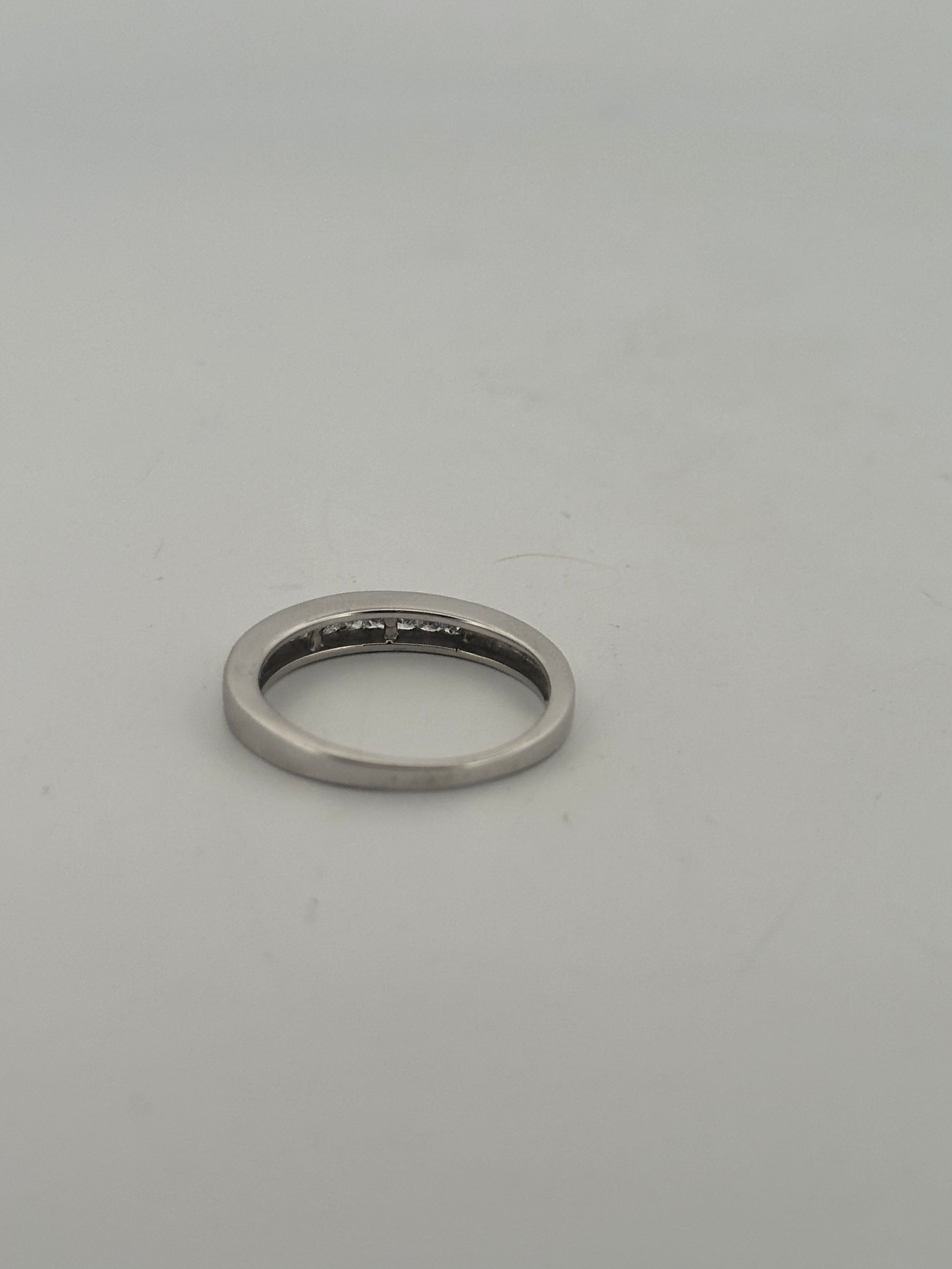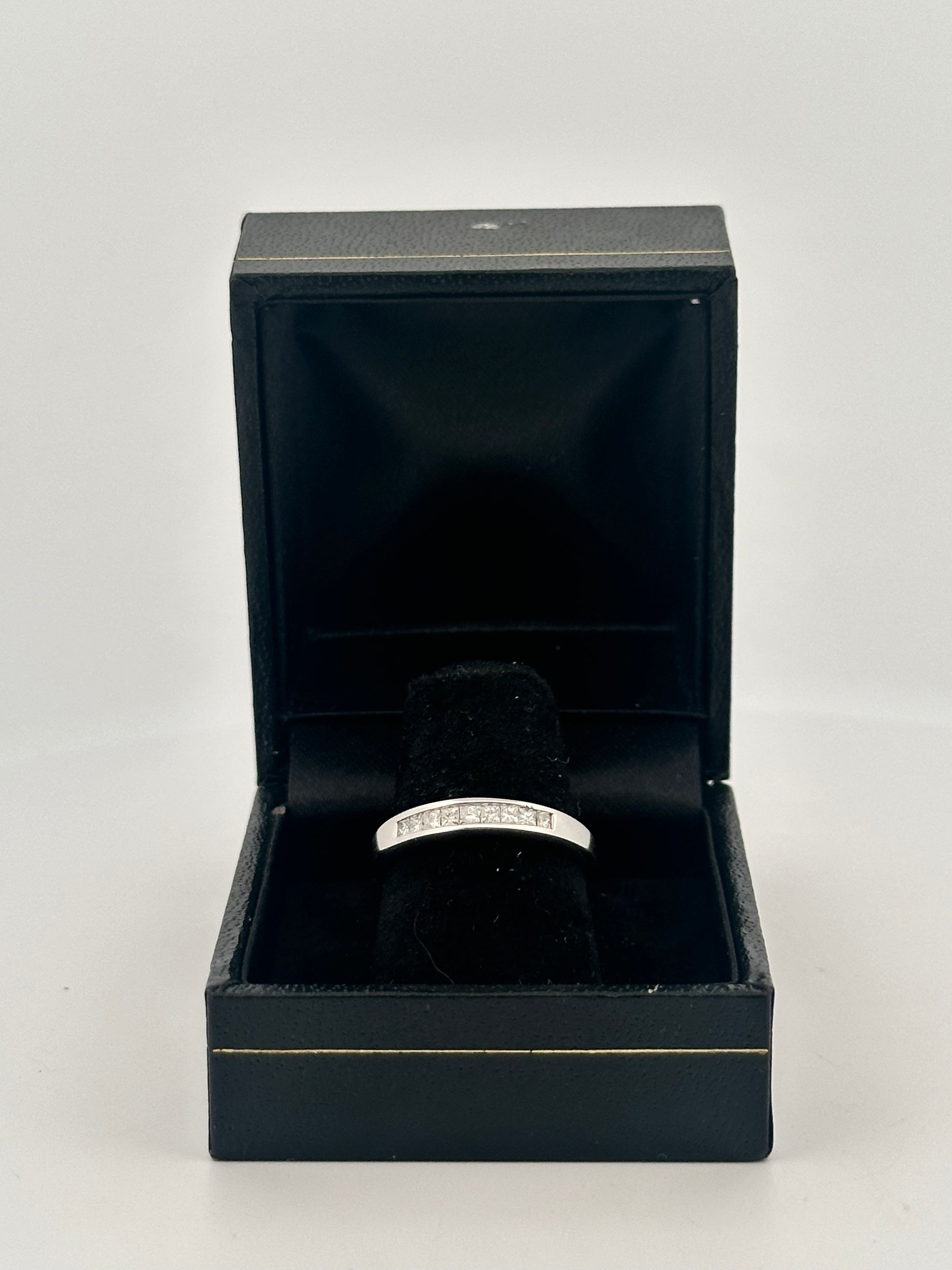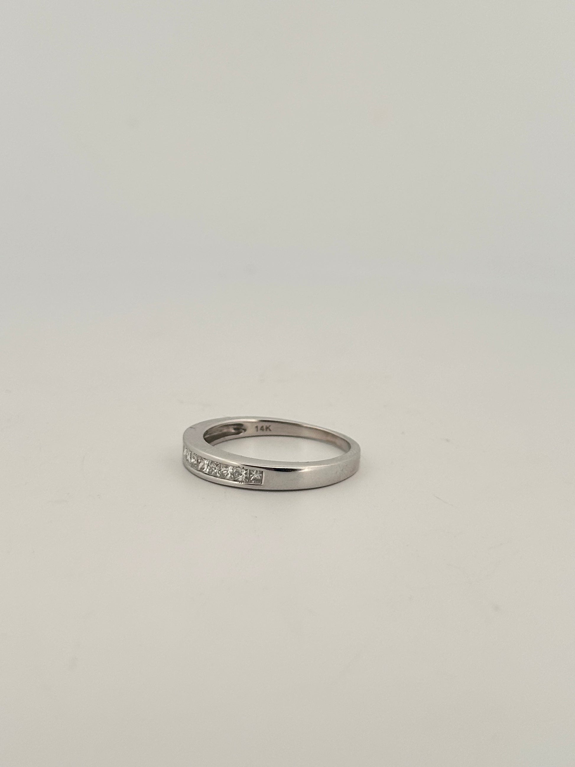 natural tension set princess cut diamond half eternity band in 14k white gold.