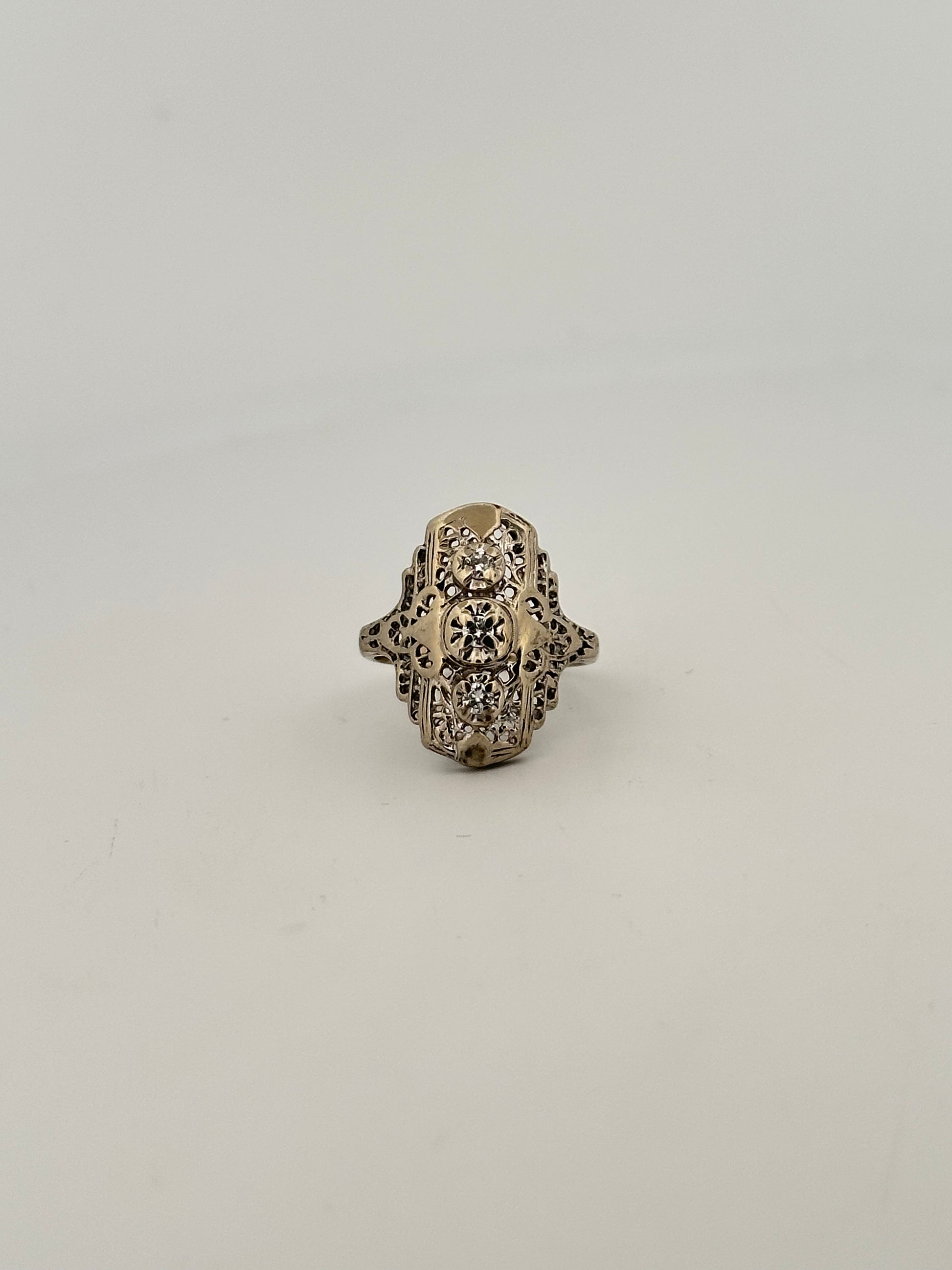 Vintage art deco shield ring in 10k white gold