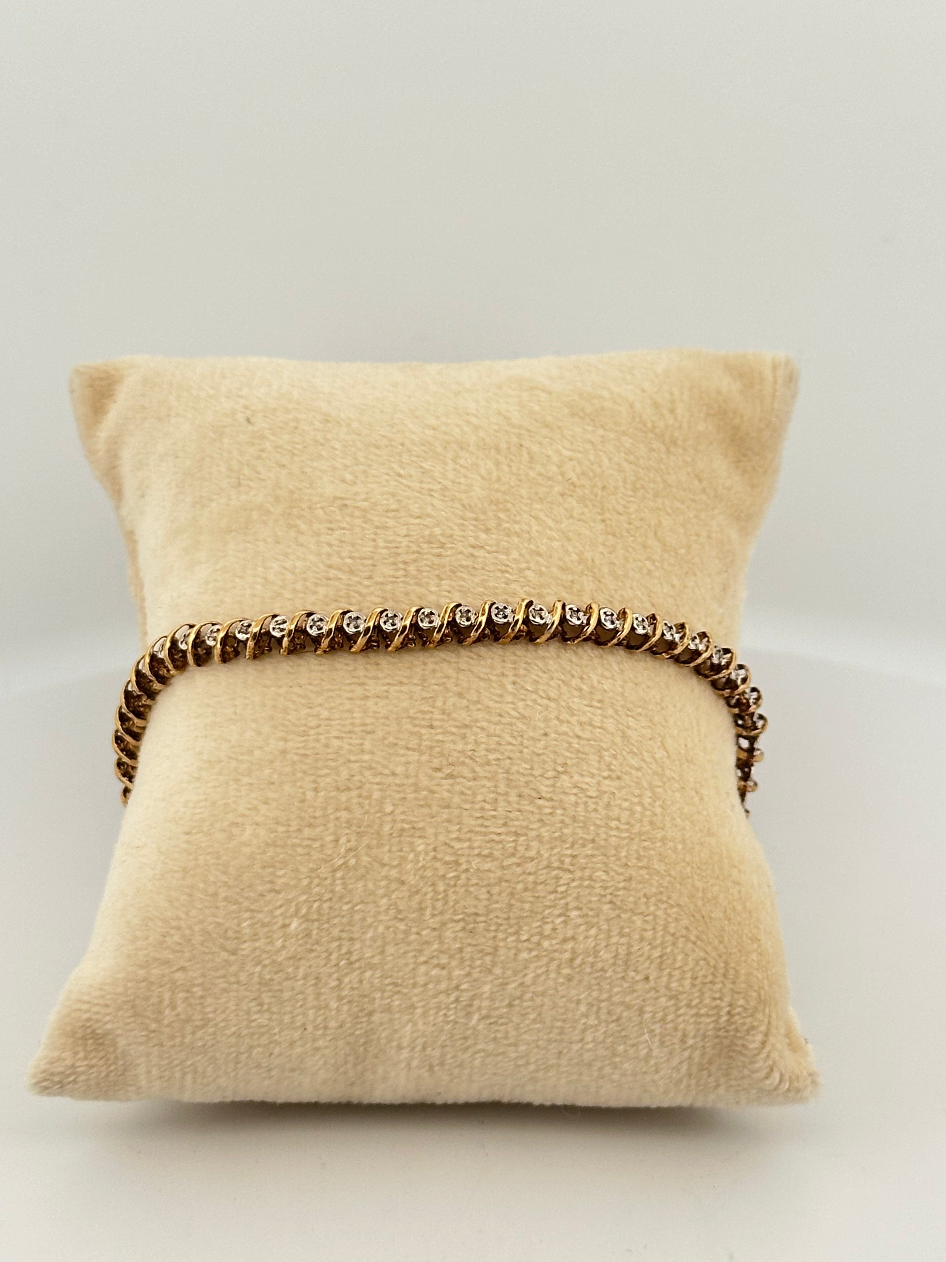 Vintage natural 1ct diamond tennis bracelet in 10k gold