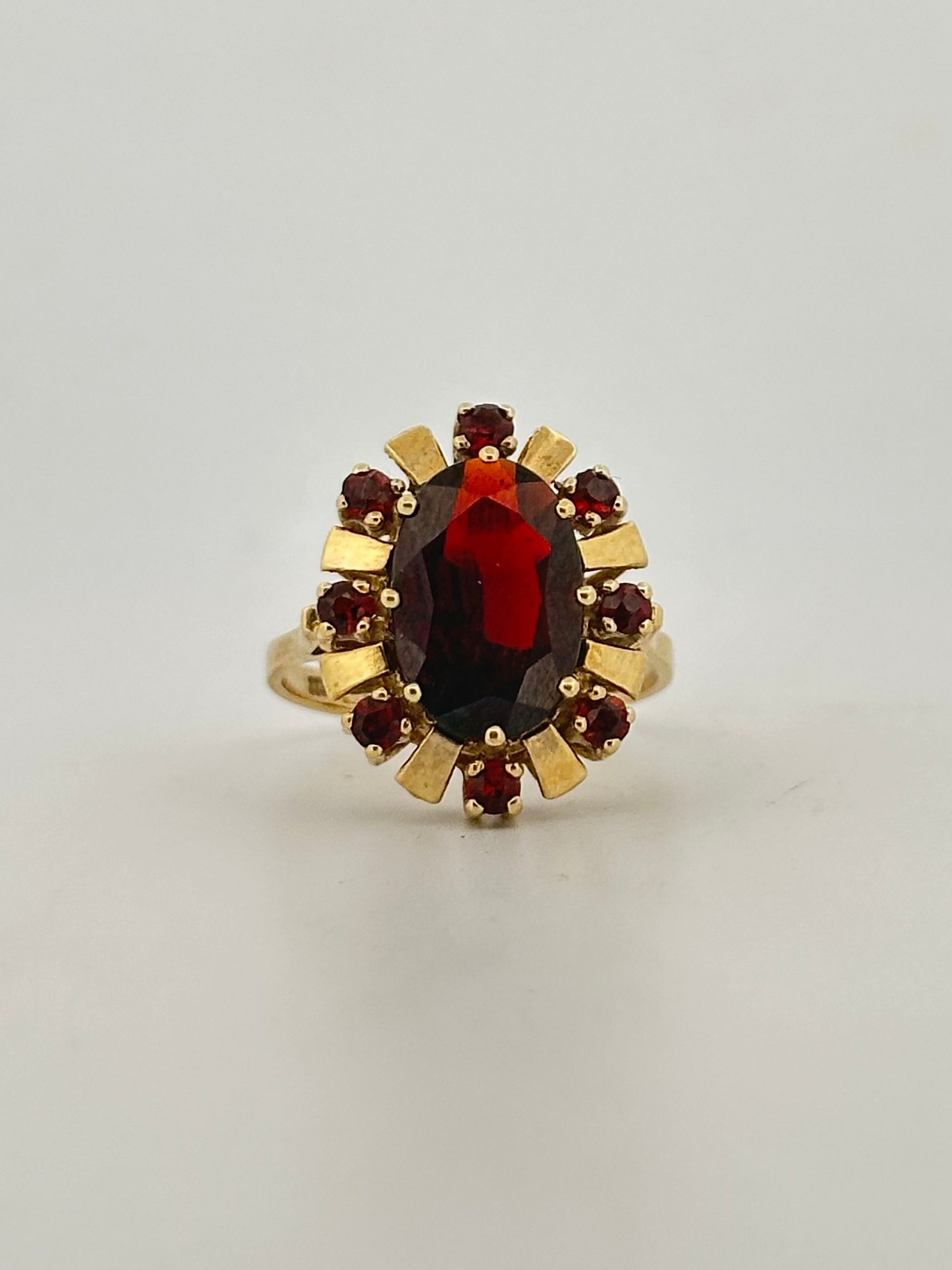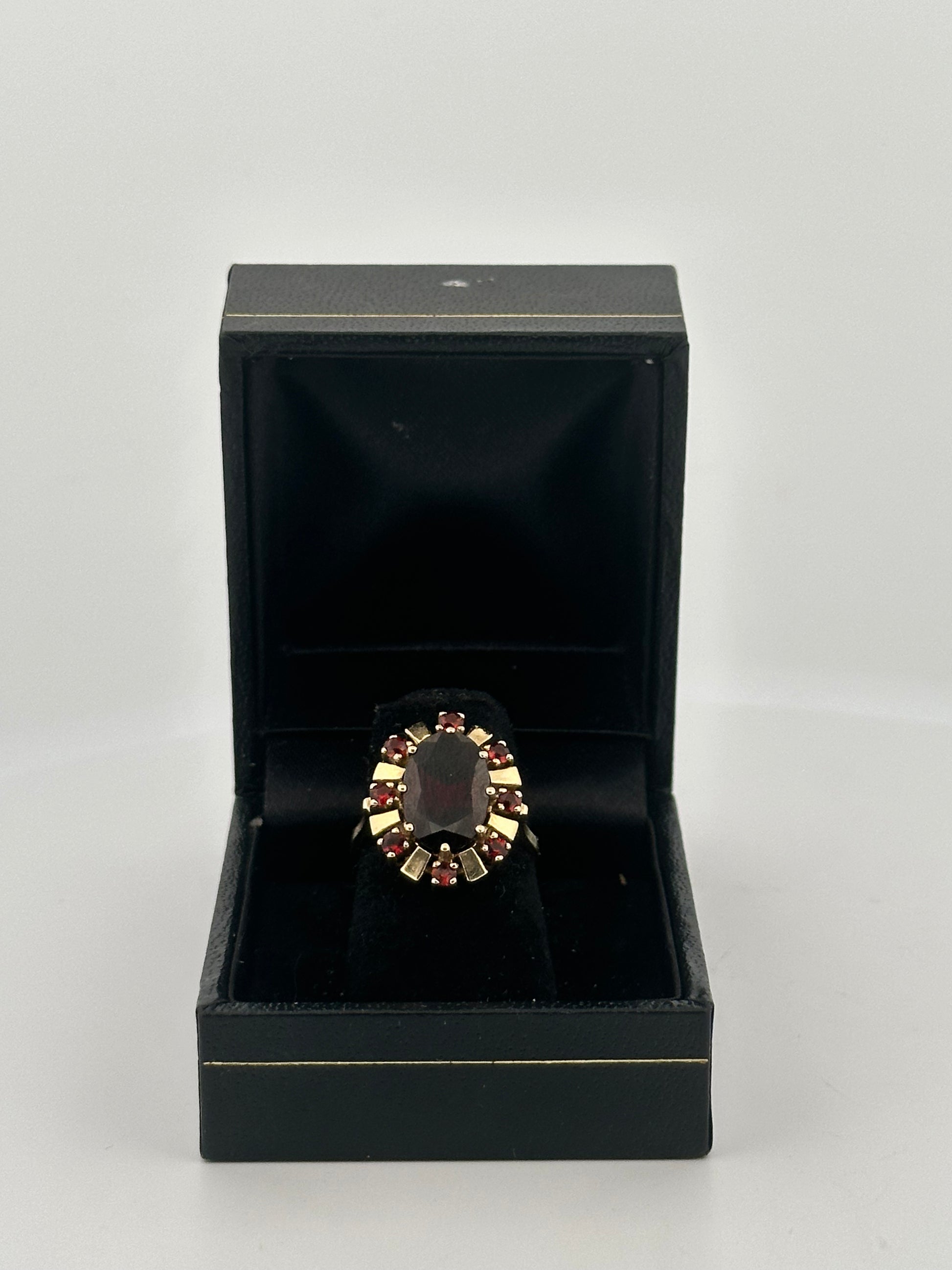 Vintage 9k yellow gold natural garnet cocktail ring with 2.5ct (approximately) center stone