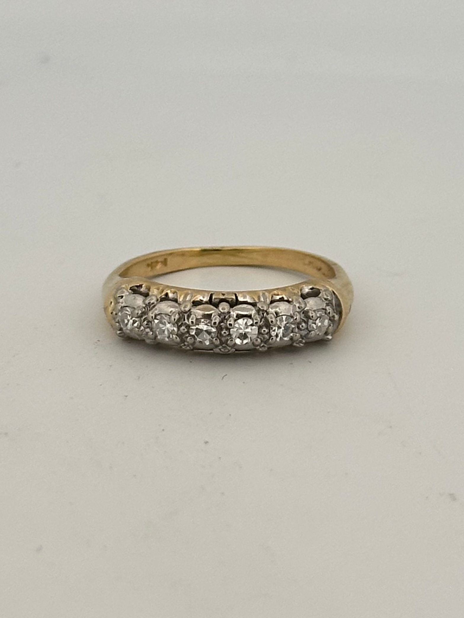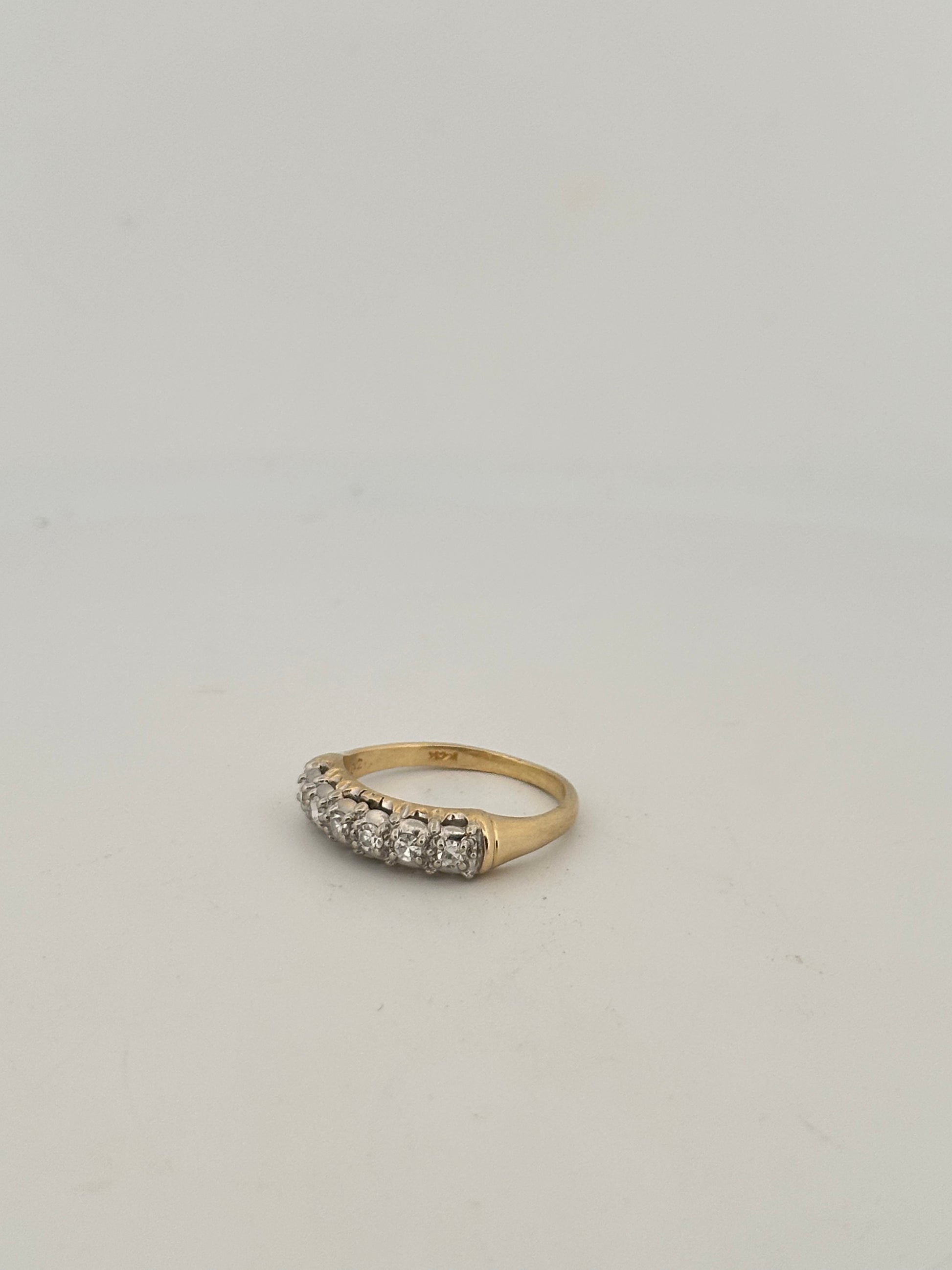 Vintage natural diamond half eternity band with 14k white gold top and yellow gold band.