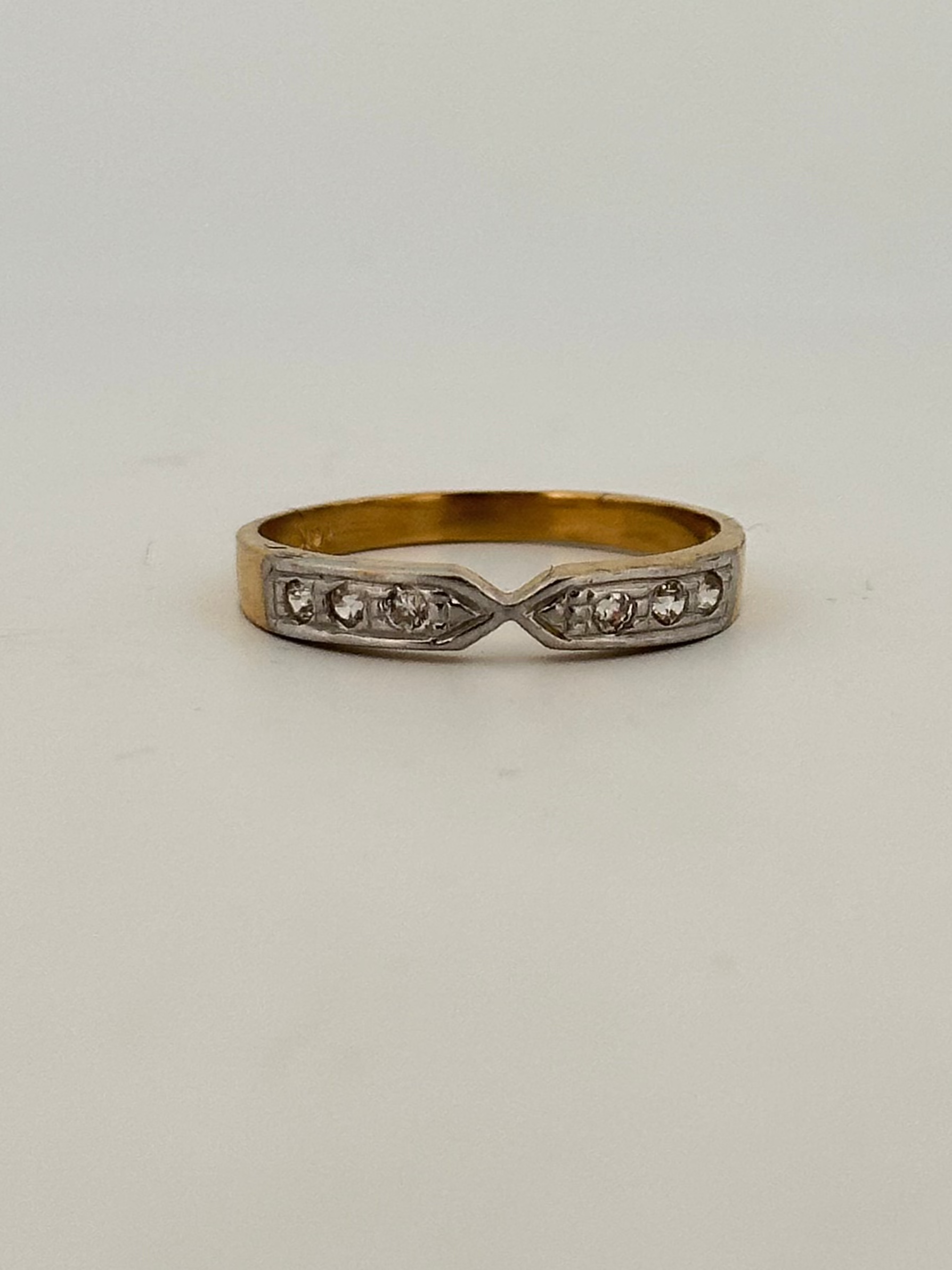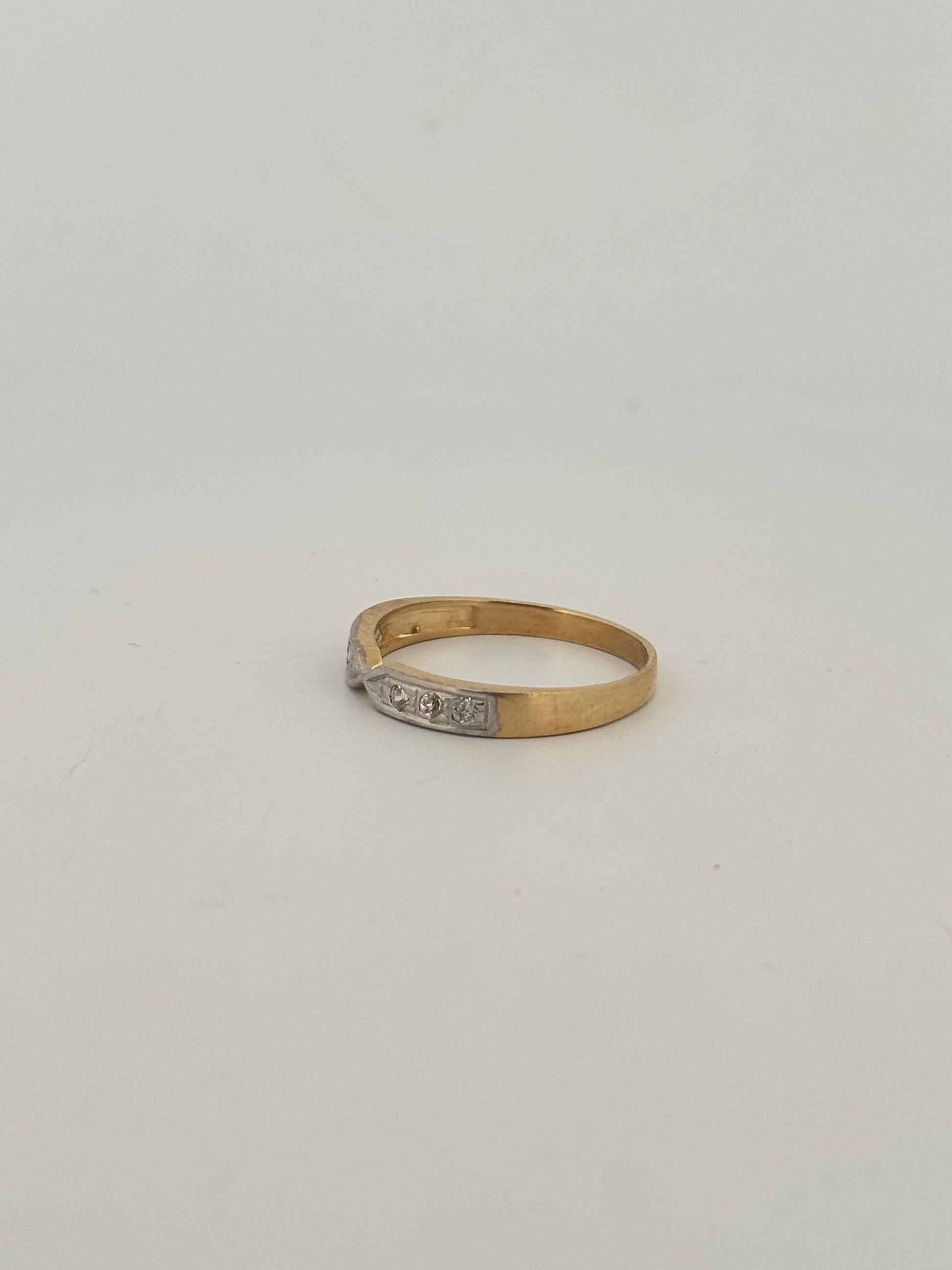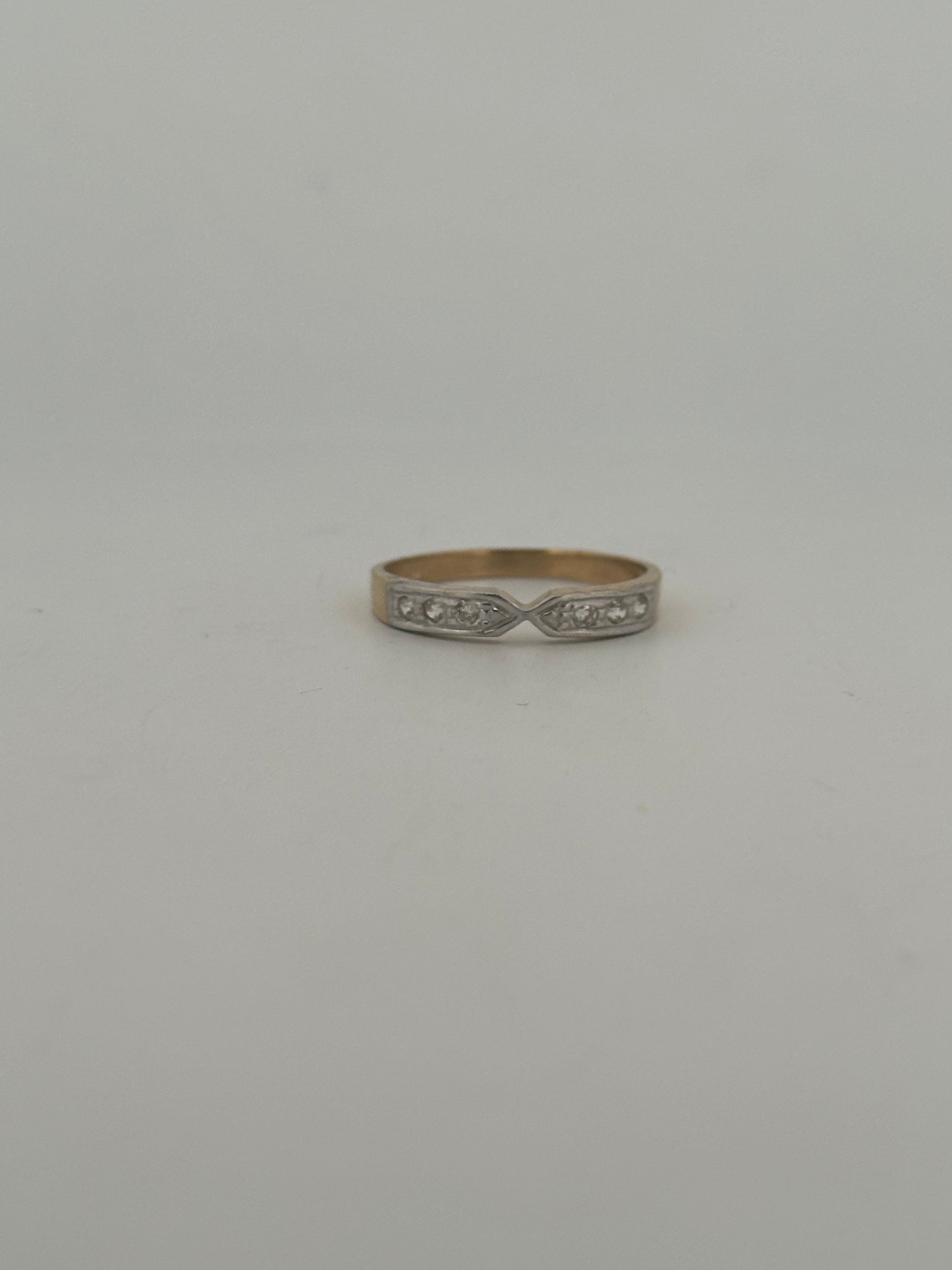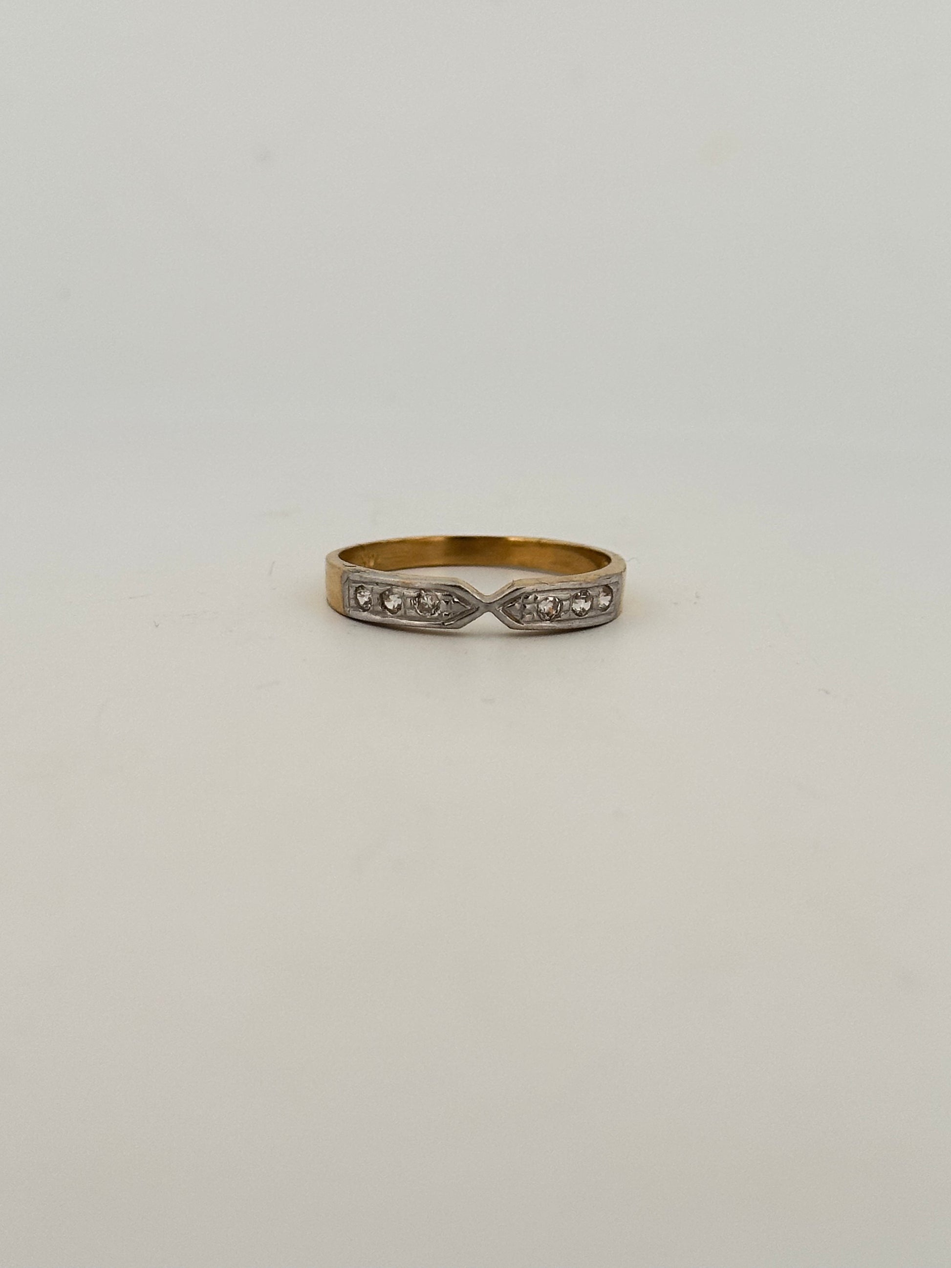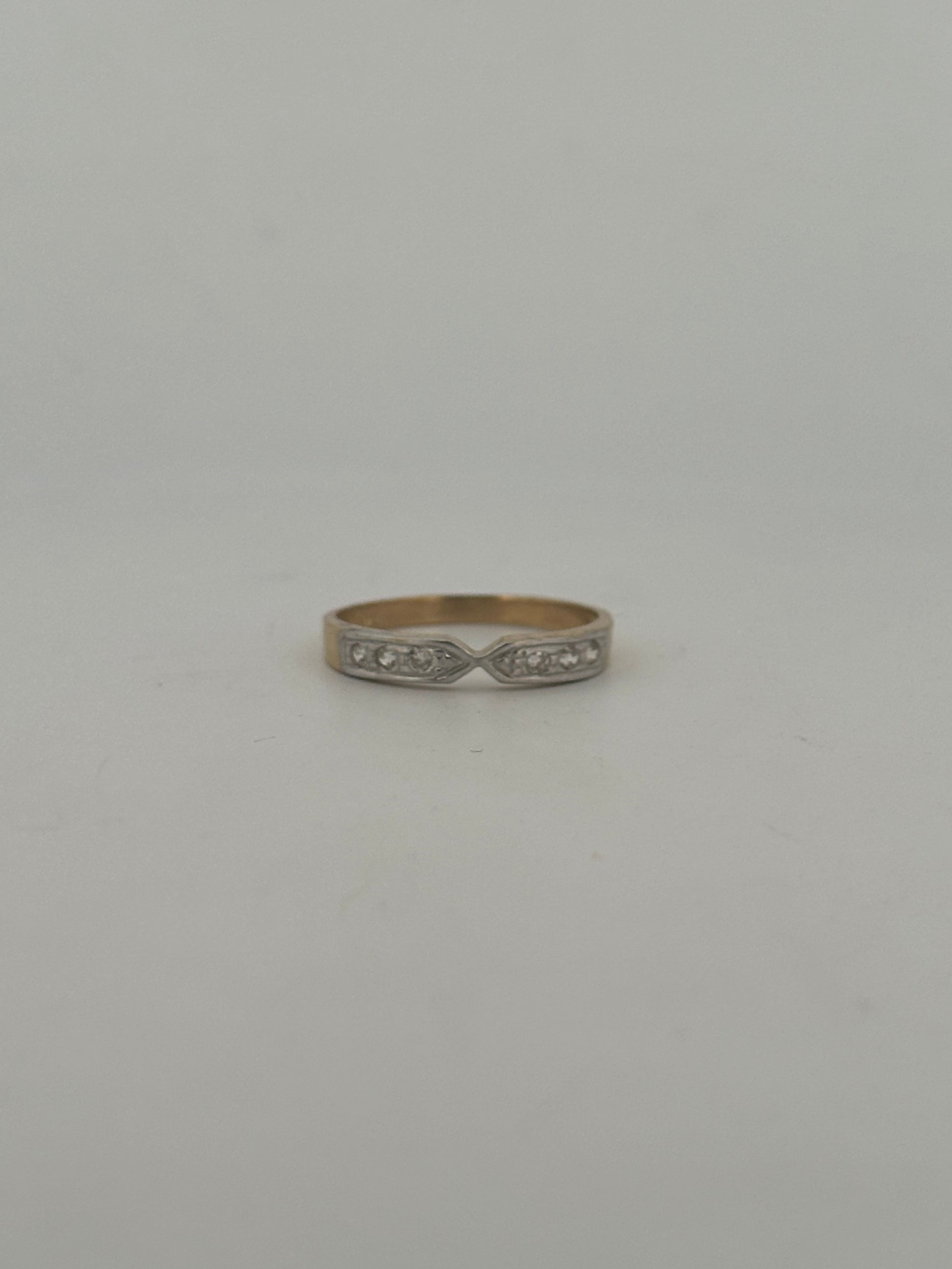 Vintage natural diamond stacker in 14k yellow gold with pinched detailing circa 1960s