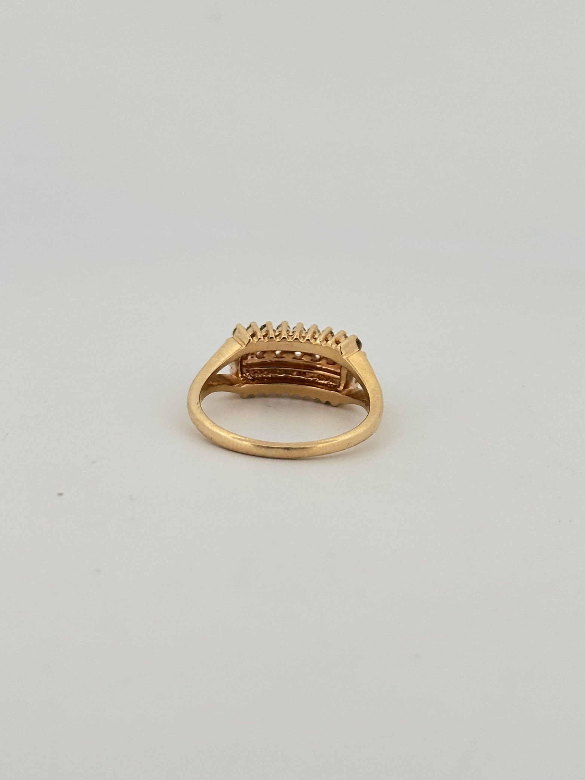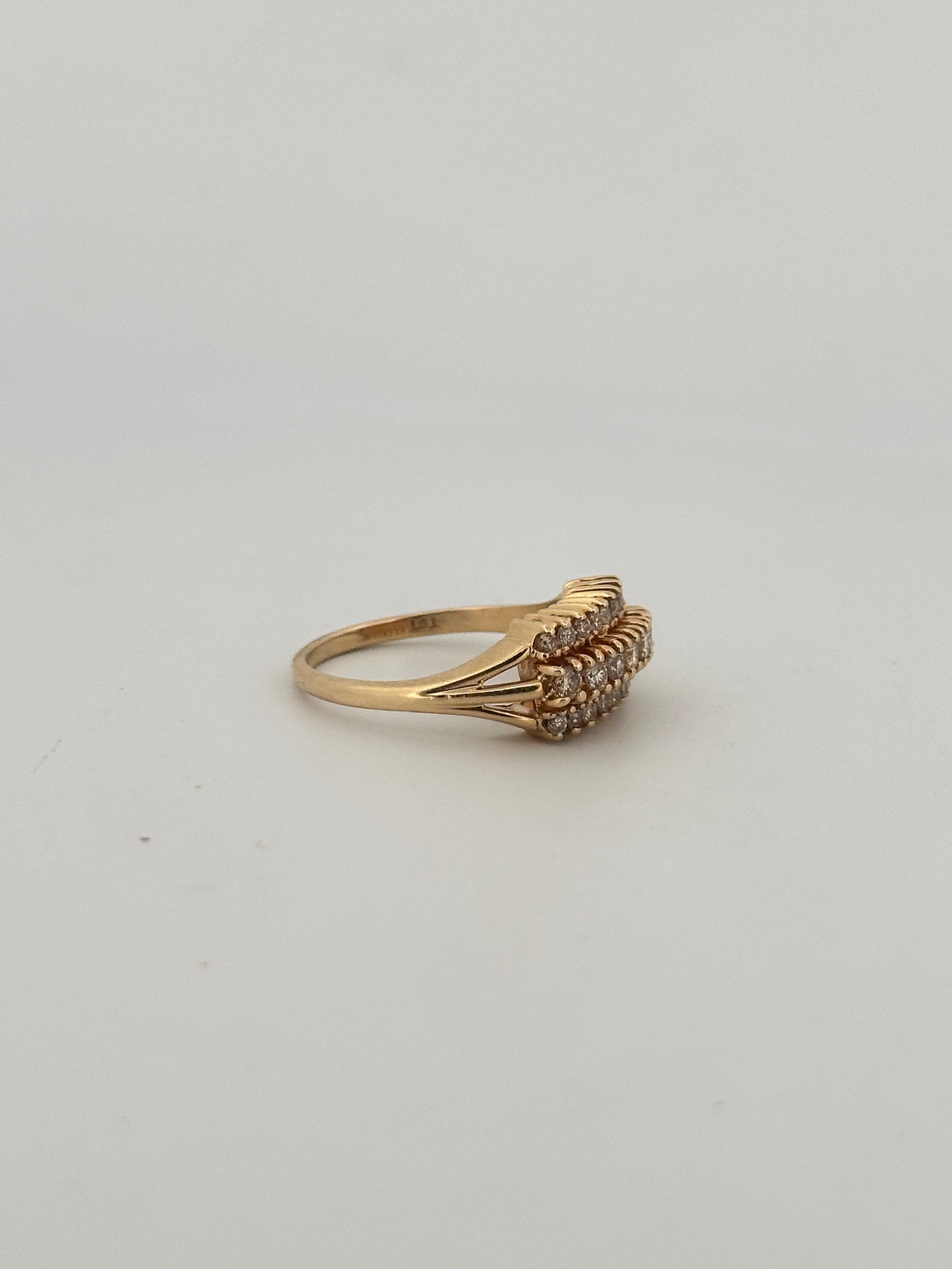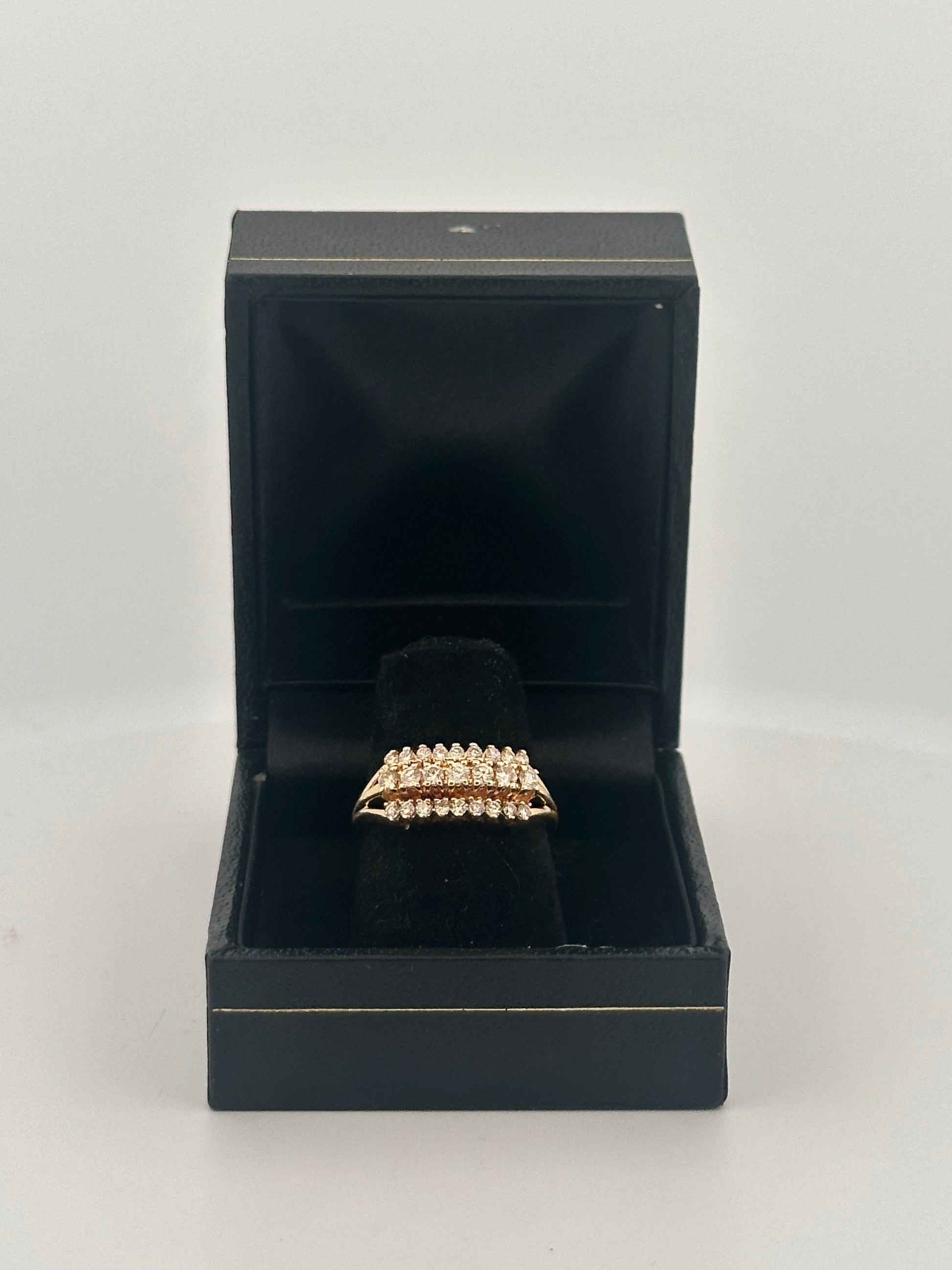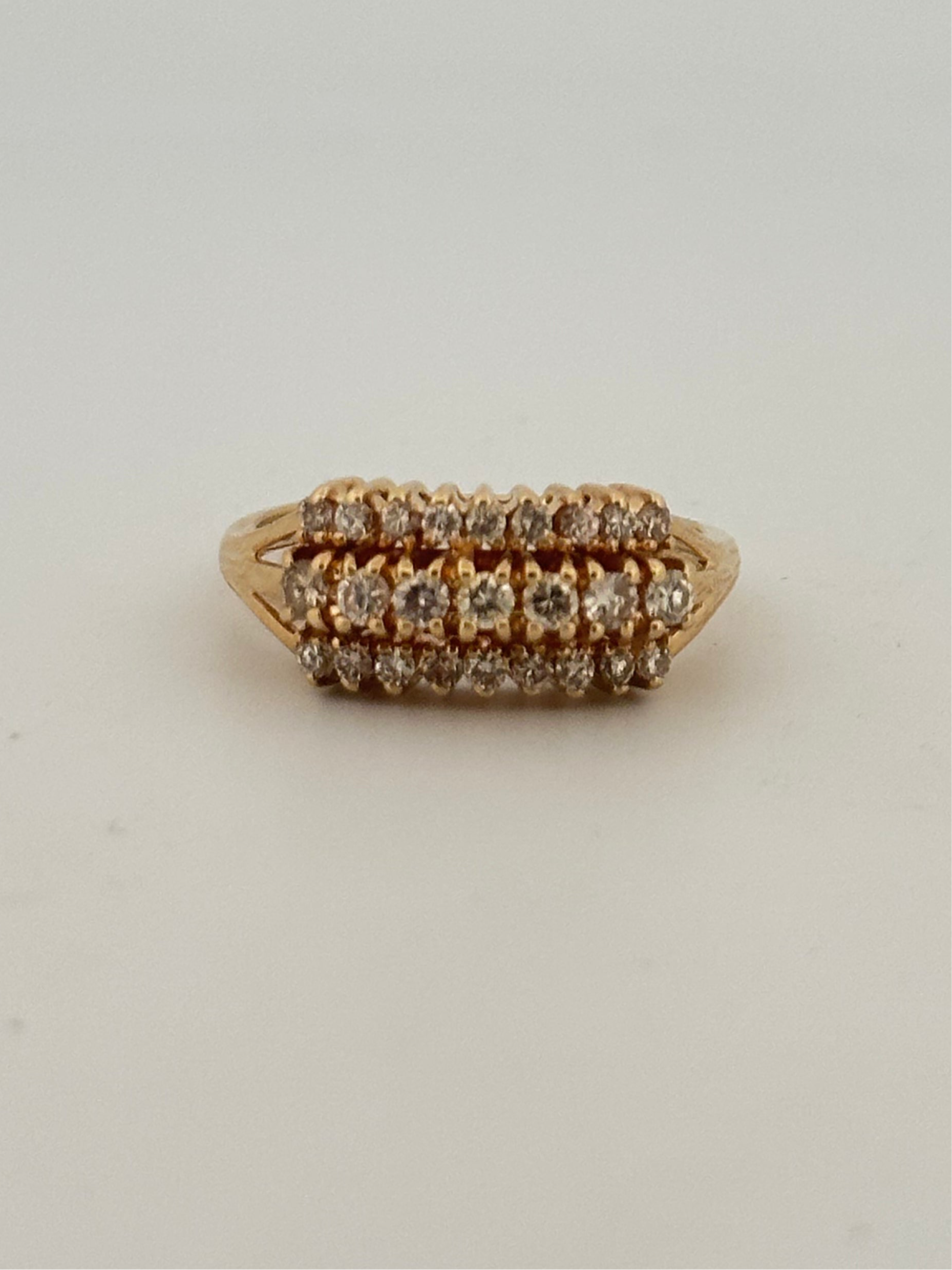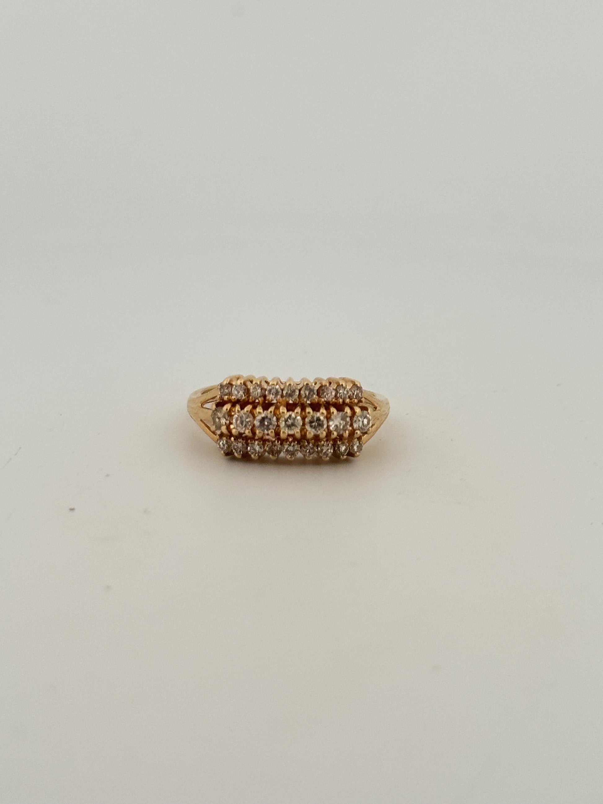Vintage natural diamond ring in 14k yellow gold with 3 rows of natural VS2 G-H color diamonds approximately 3ct total.