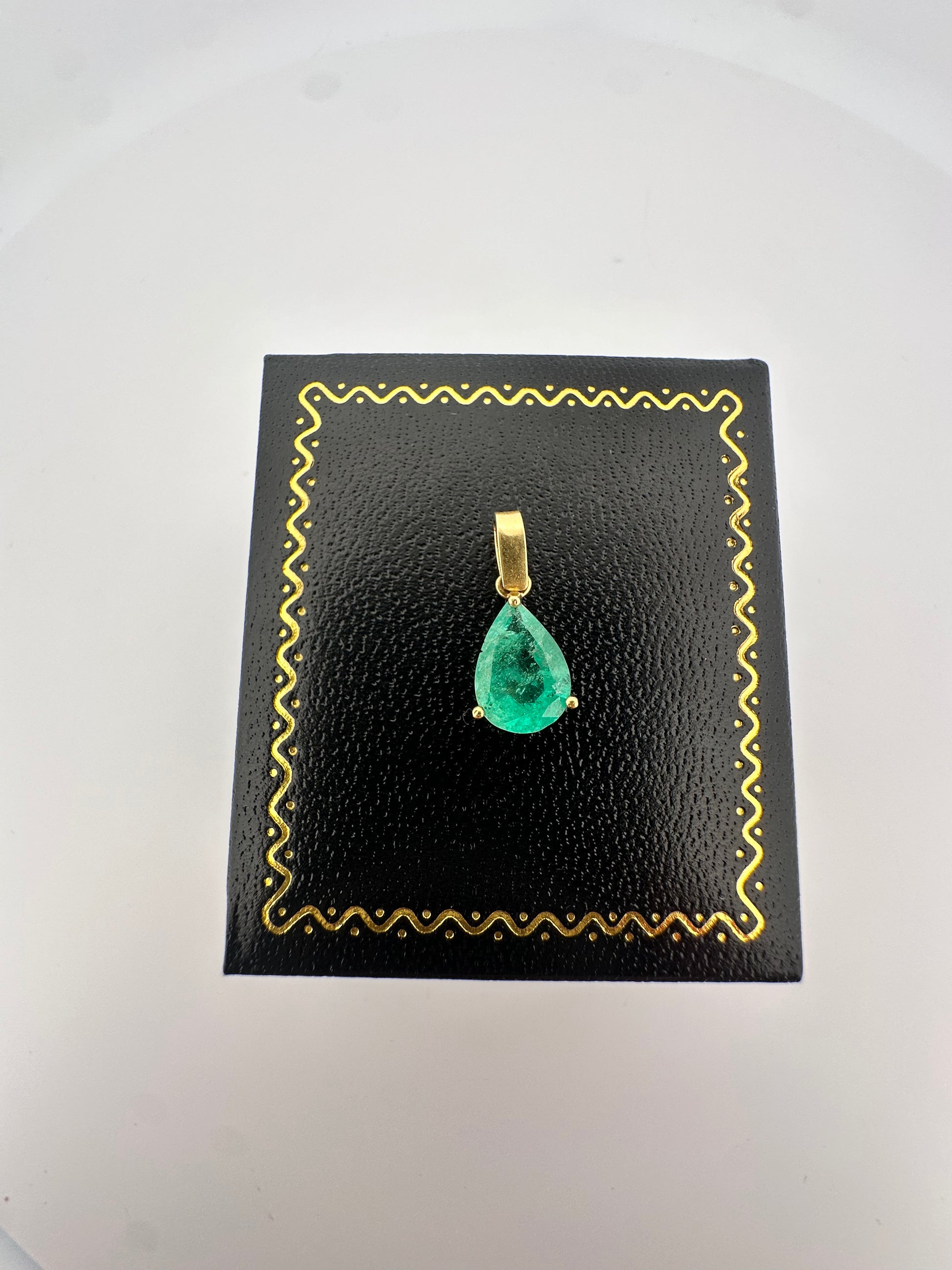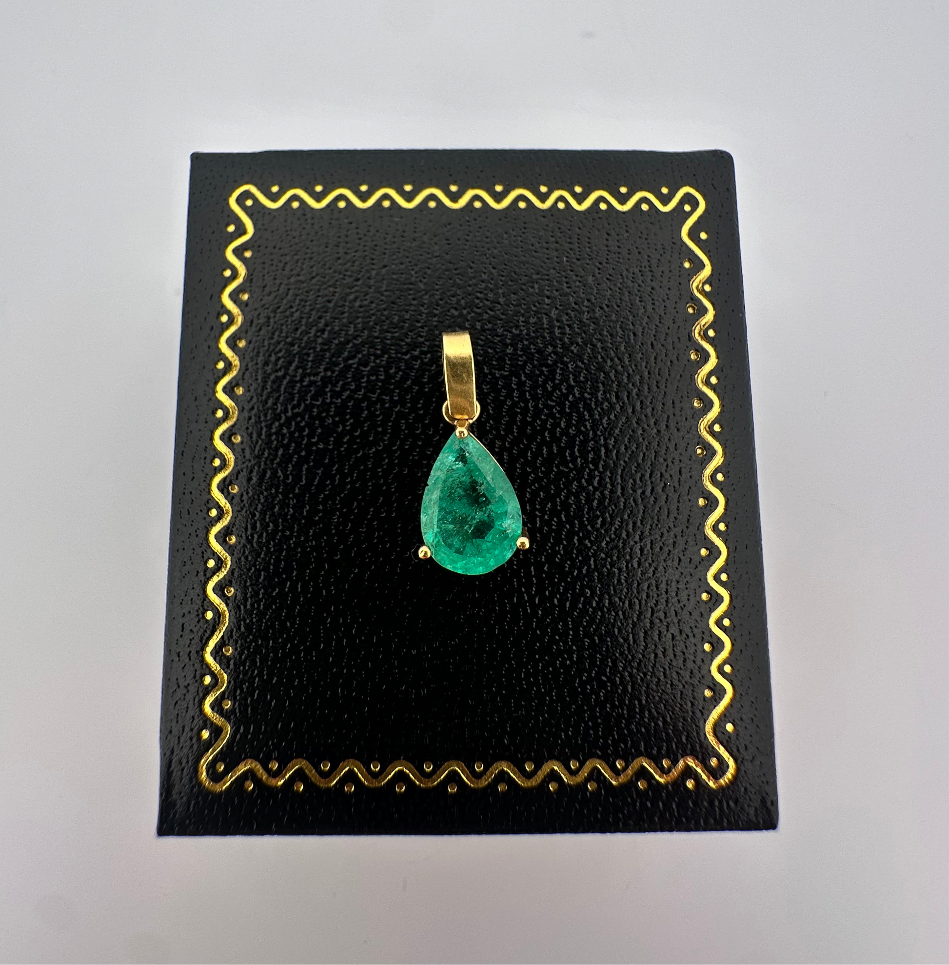 Vintage natural emerald pear shaped pendant set in 14k yellow gold