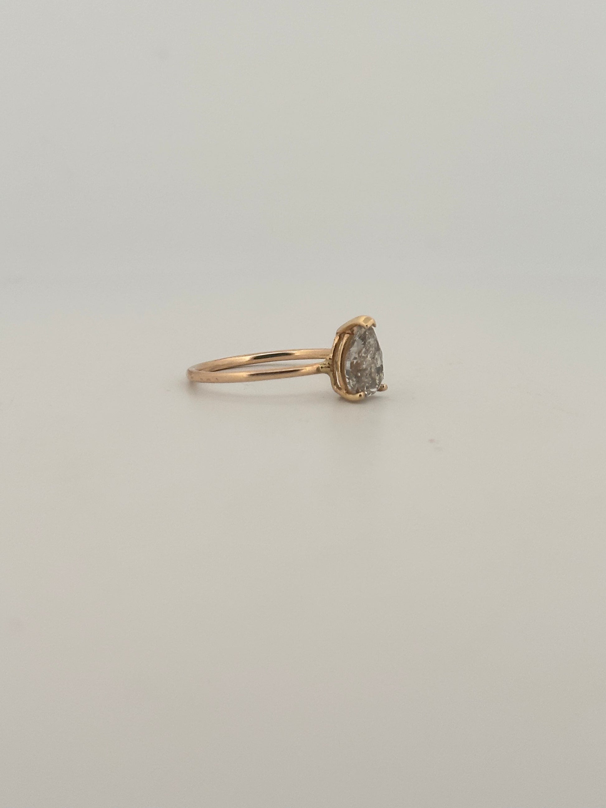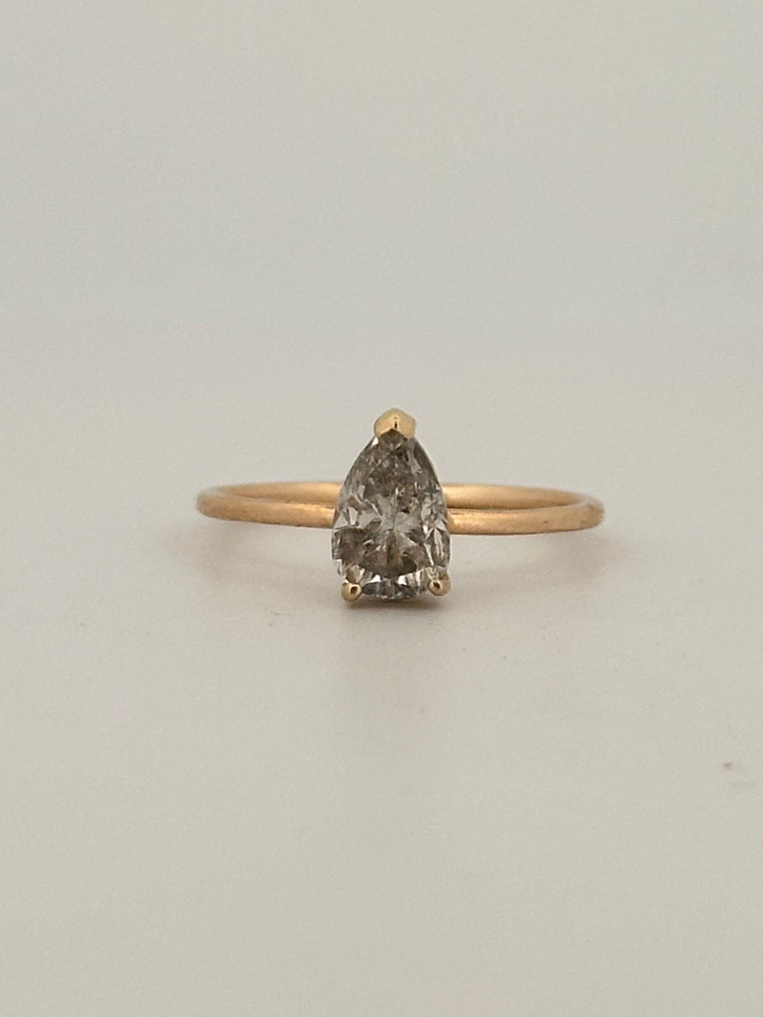 Vintage natural pear shaped diamond solitaire ring in 14k yellow gold